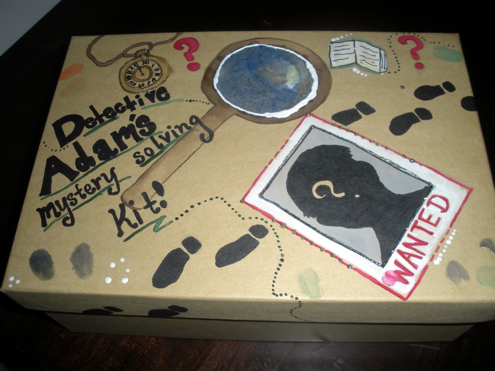 I love it , so cutie had to make this right away for my little brother he loves to play detective. On the top of the box at the bottom picture she has an envelope that says suspects, when I made it I put a picture of every one in my family and some friends to. He will love it