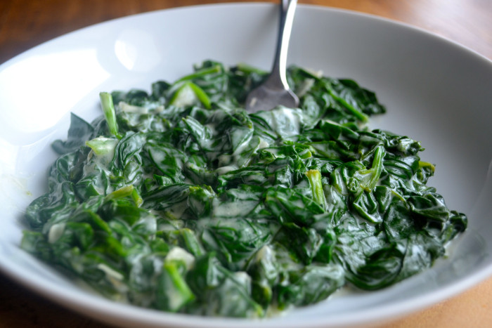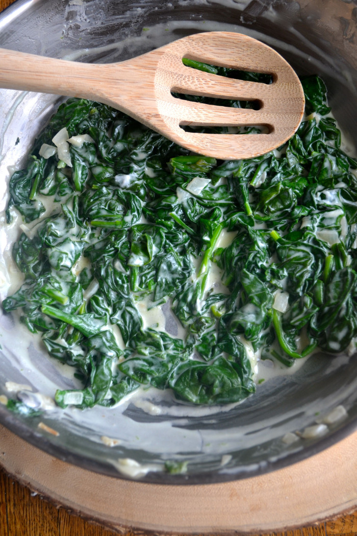 Creamed spinach with goat cheese is just the best. It adds the perfect touch to this dish.