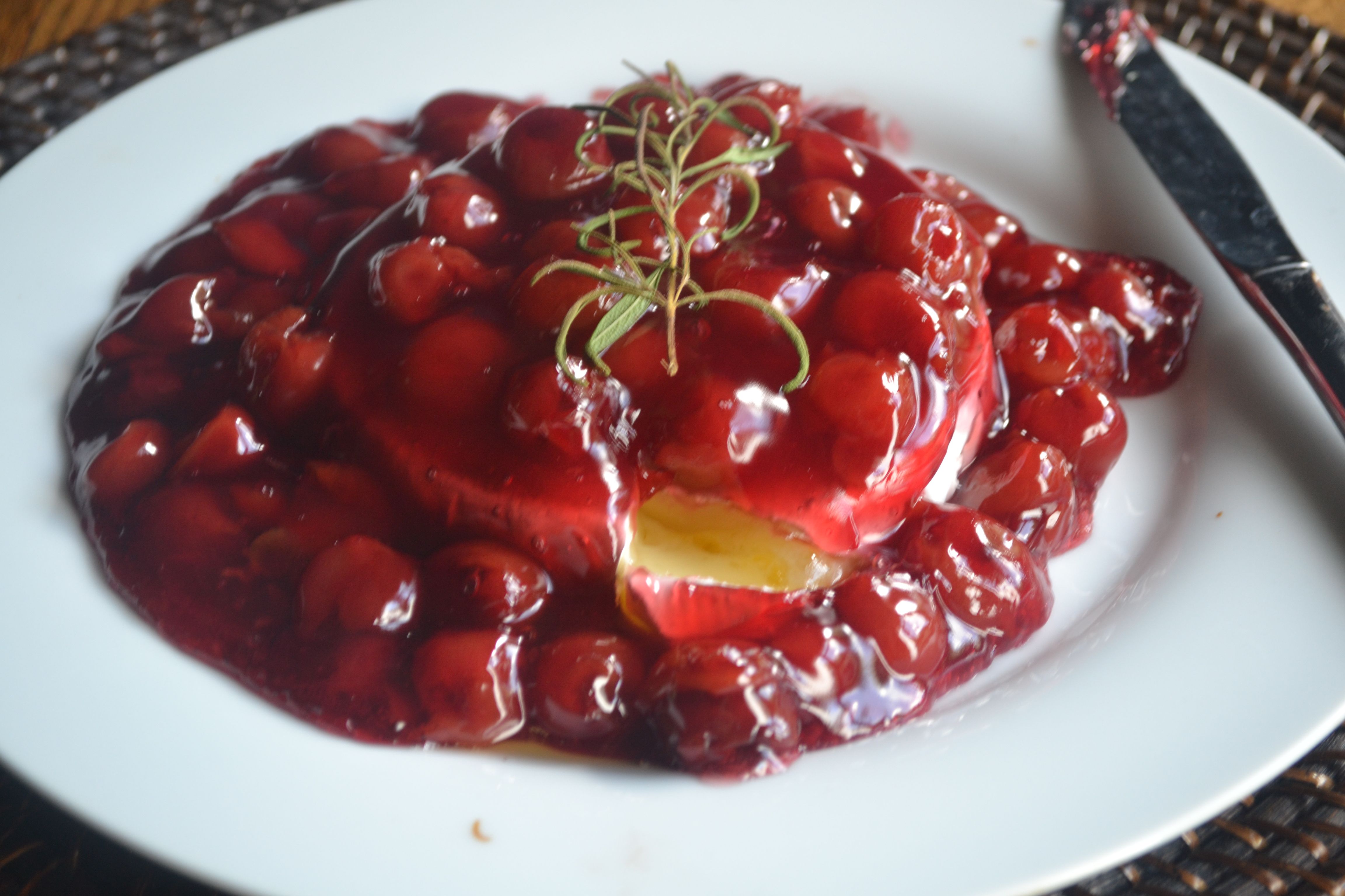 Method: Preheat oven to 350 degrees f. On an oven-safe plate or baking dish, place a wheel of brie and dump the cherry pie filling on top of the brie. Add a sprig of rosemary. Bake in the oven for 10-12 minutes, or until the cheese is bubbly. Serve with your choice of crackers or pretzels. * Really in a time crunch? try heating it in the microwave!