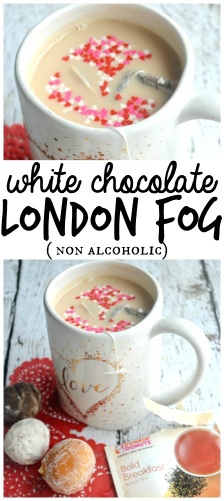 Valentines Day is my favorite holiday. I often start planning out our Valentines in January. It is such a fun celebration in the middle of a bleak, blustery winter. My husband and I are parents to three boys. We are often cold and tired this time of year. There is no better treat we can give each other than a nice warm cup of caffeine. This non alcoholic White Chocolate London Fog is wonderful.