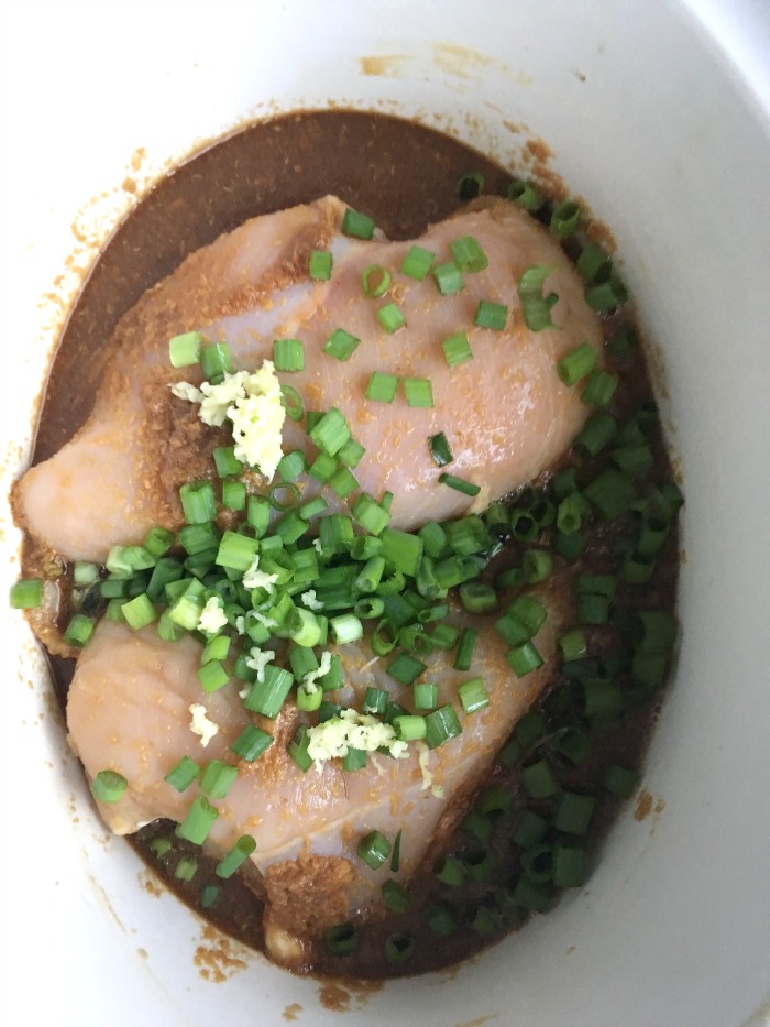 However, I think that adding the vegetables in the crock pot would also work. I would choose vegetables that cook fast. Like cabbage, bell peppers, spinach, kale and snow peas. If you add the vegetables in the slow cooker with the meat- I would put the vegetables on top of the chicken.
