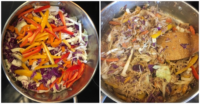 When I make Pad Thai, I usually don’t go out and buy special vegetables for it. I just use what I have around. However, if I have cabbage, that is a plus. I am really starting to love cooked cabbage in different recipes, Especially stir fry’s and fried rice. It is a great low calorie filler- plus cooked cabbage is actually really delicious.