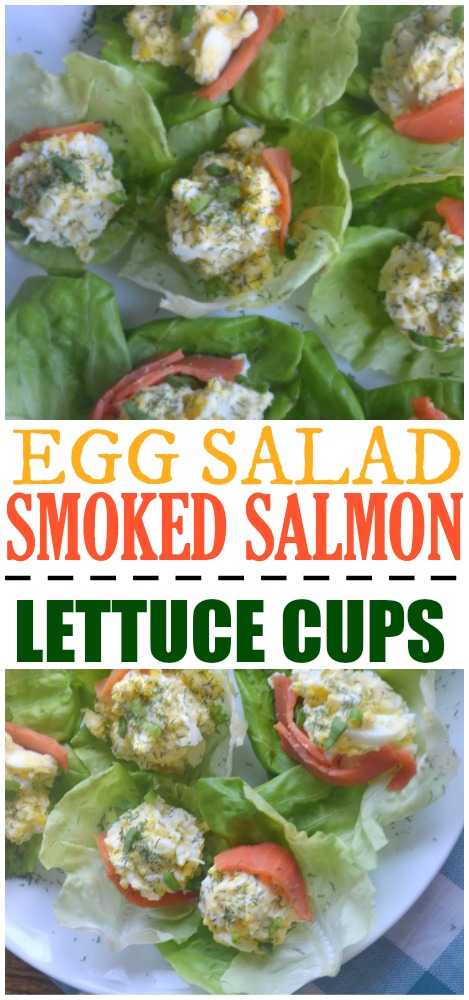These egg salad and smoked salmon lettuce cups are perfect for Easter.  Most of us will have some extra hard-boiled eggs around.  Plus, I love serving smoked salmon for brunch.  I can’t imagine having a holiday spread without it.  A small piece of smoked salmon goes a long way with flavor.
