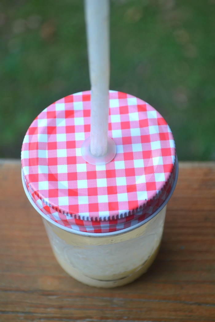 I created five different flavors and sweetened mine ever so slightly using maple syrup. You can sweeten yours with whatever you like, or just let the fruit sweeten your yogurt. I made my drinkable yogurts using mason jars. You can get jar lids that fit a straw, like in the photo below, or untwist the cap and have at it.