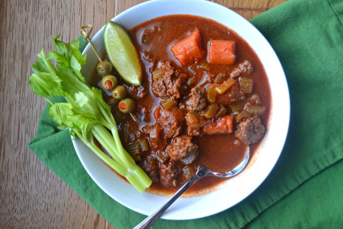 I saw where a blogger friend of mine posted a photo of vegetable soup on her Instagram using tomato juice as a base, and my mind started wandering. Then the next thing I knew, I was at home making this bloody mary beef goulash. I just loved the idea of using tomato juice as a base for a soup or a stew.