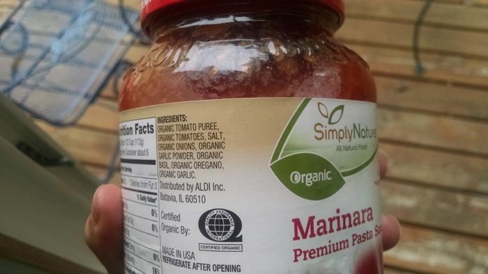 This organic Marinara sauce from Aldi is terrific. There is no sugar and is just a delicious, simple sauce. Not only do I love keeping it around for spaghetti, but I use it in other dinner recipes too.