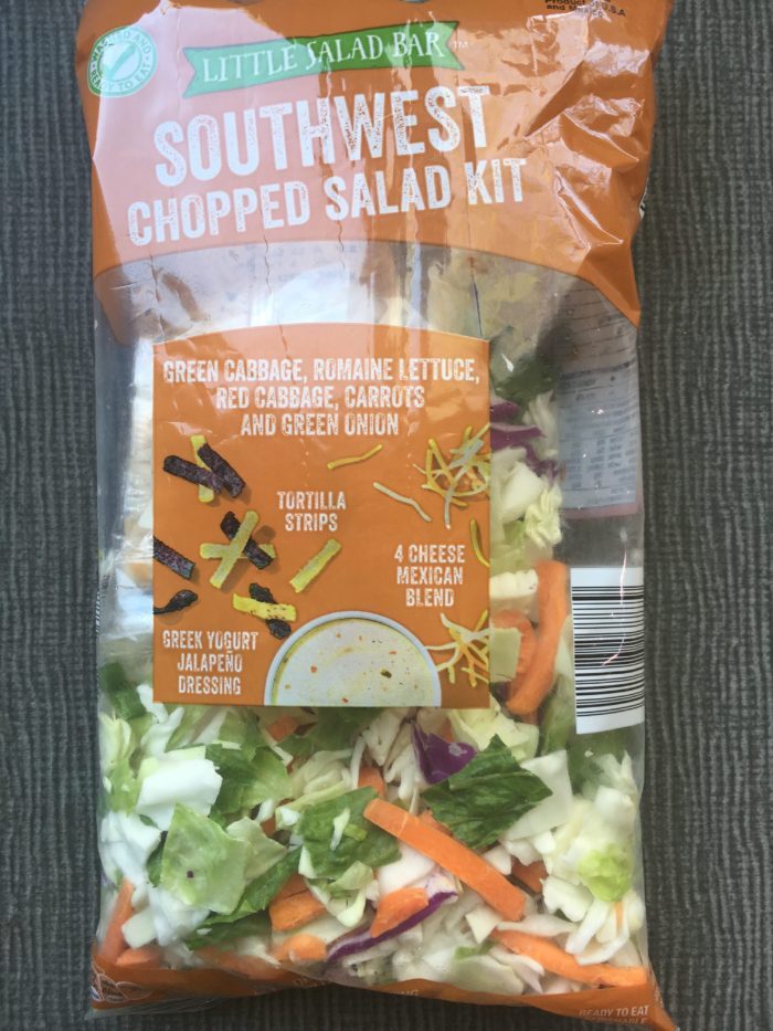 I love the convenience of bagged salad kits during the week! But I do think that $4.00-$5.00 is too much to pay for one. Aldi has four salad kids that I love, and they are so much less expensive! I love this Southwest chopped salad. Not only do I like to dress it up a little bit for a meal, but on hectic nights I will throw this salad together to use as taco toppings. It is so much faster than cutting all those veggies!