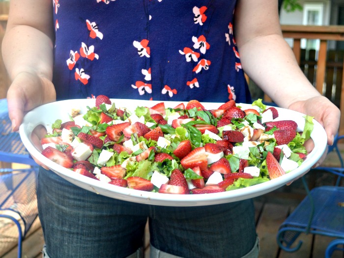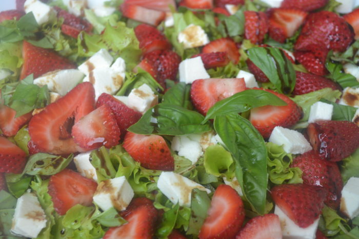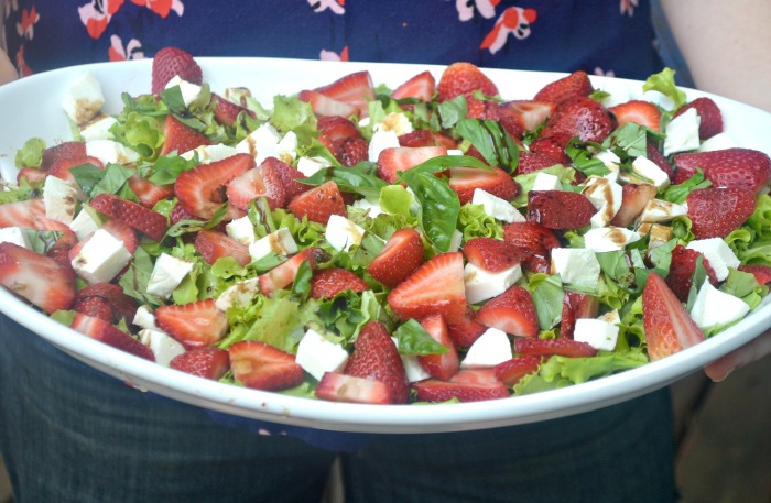 Take everything on this summer salad for example. Fresh garden lettuce, fresh garden basil, juicy red strawberries, soft fresh mozzarella cheese and a pure sweet balsamic vinegar. This salad could be a meal, but you don’t feel like your just eating salad when you have it.