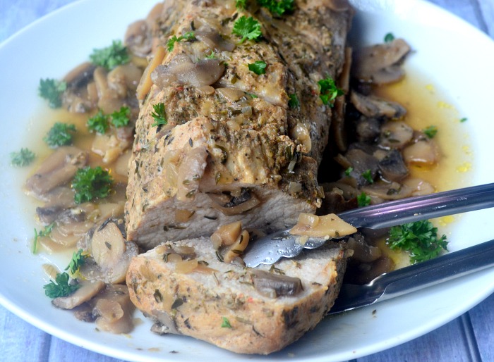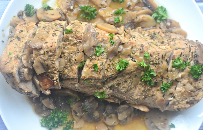 I just simply added a few ingredients to this Fresh Pork Lon in order to make this delightful meal. I picked up a Fresh Pork loin at this past weekend, along with some frozen mushrooms, which I also used in this dish. I used marsala cooking wine in this recipe. Marsala cooking wine is not found in the wine aisle. You will find it next to all the vinegar and olive oil. There actually isn’t alcohol in it. When you are done cooking this recipe, you will have a lot of juice leftover that you can drizzle on top on your pork loin for extra flavor.
