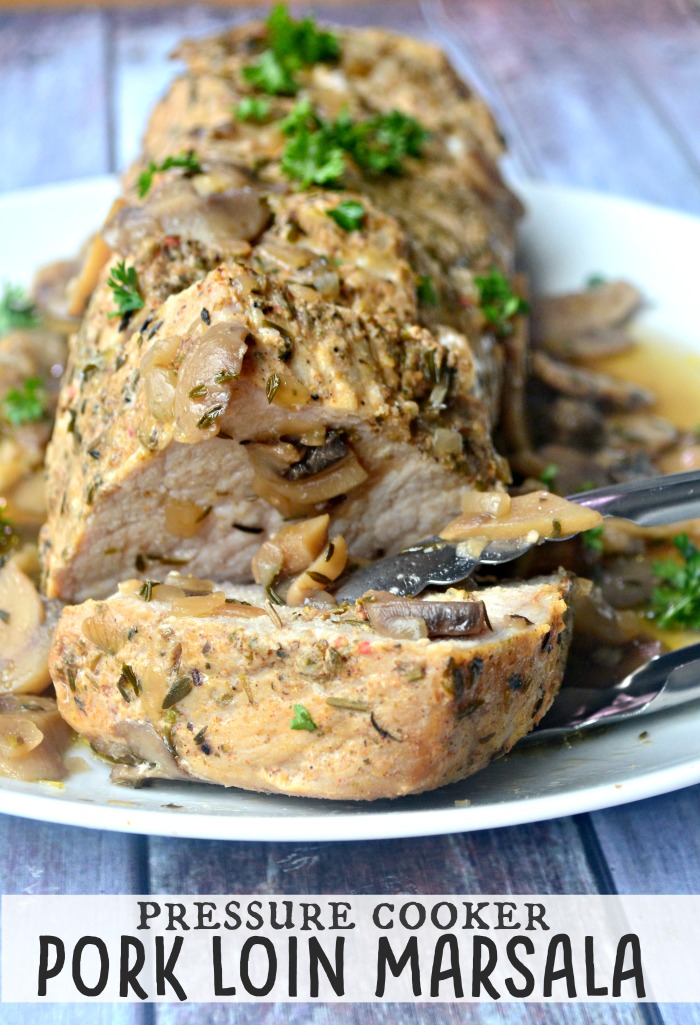 This pressure cooker pork loin marsala embodies many things that I love. It has the flavors of one of my favorite Italian dishes but is made with flavorful, juicy pork loin. This recipe is a remarkably comforting way of warming up, and it takes less than 30 minutes to make. Plus, I have a newfound love for pressure cookers. Cooking pork in my pressure cooker made for some exceptionally flavorful pork!