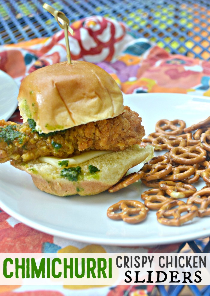 Chimichurri sauce is an Argentinian sauce that I am adding to traditional “American” dishes. This summer, I drizzled it on my sweet corn, added it to my bacon, lettuce, and tomato sandwiches, and now I have added it to a crispy chicken slider sandwich, and I am so happy I did! These sliders were crunchy, tangy, savory, and comforting—perfect for any game day!