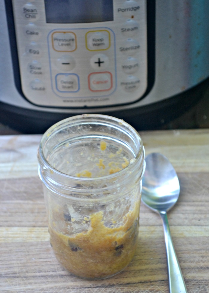 Which brings me to this mason jar chocolate chip cookie for one. This is ooey, gooey, melty and the perfect thing to whip up when you want something chocolatey and sweet! I have made those microwave mug cake/cookie recipes a few times, but making this in the Instant Pot was soooo much better! This cookie for one came out perfectly steamed instead of dried out.