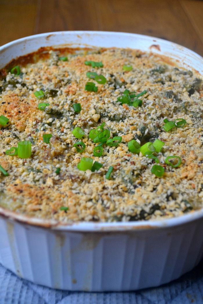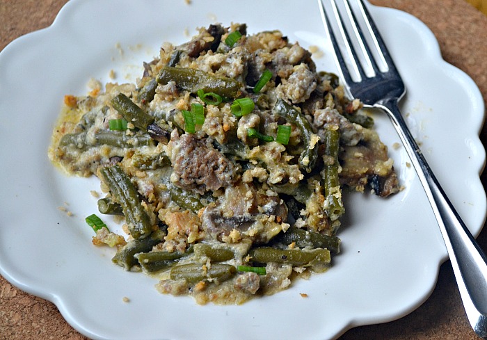 In my house, we love green beans all year round. We have two vertical garden boxes devoted to just green beans every summer, we enjoy canned green beans for a quick side dish all year round, and we always enjoy green bean casserole on special occasions and not so special occasions. It never occurred to me until just recently to turn our favorite holiday side dish into a legitimate square meal.