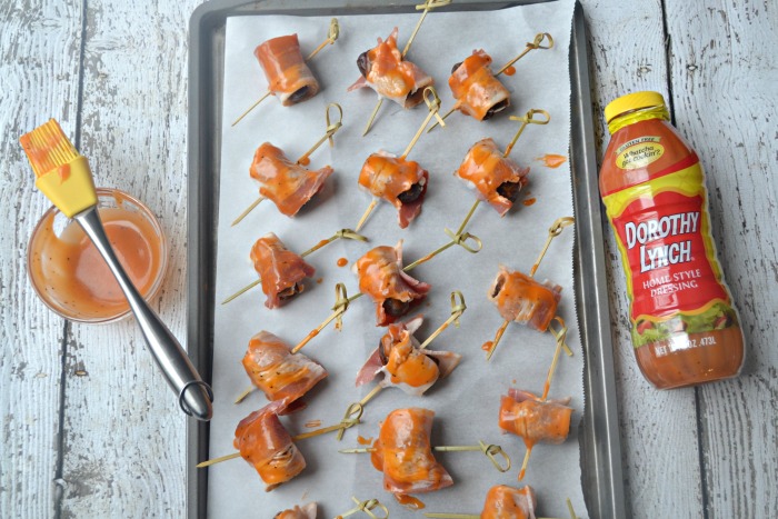 With a pastry brush, glaze a generous amount of Dorothy Lynch Home Style Dressing & Condiment onto each date.