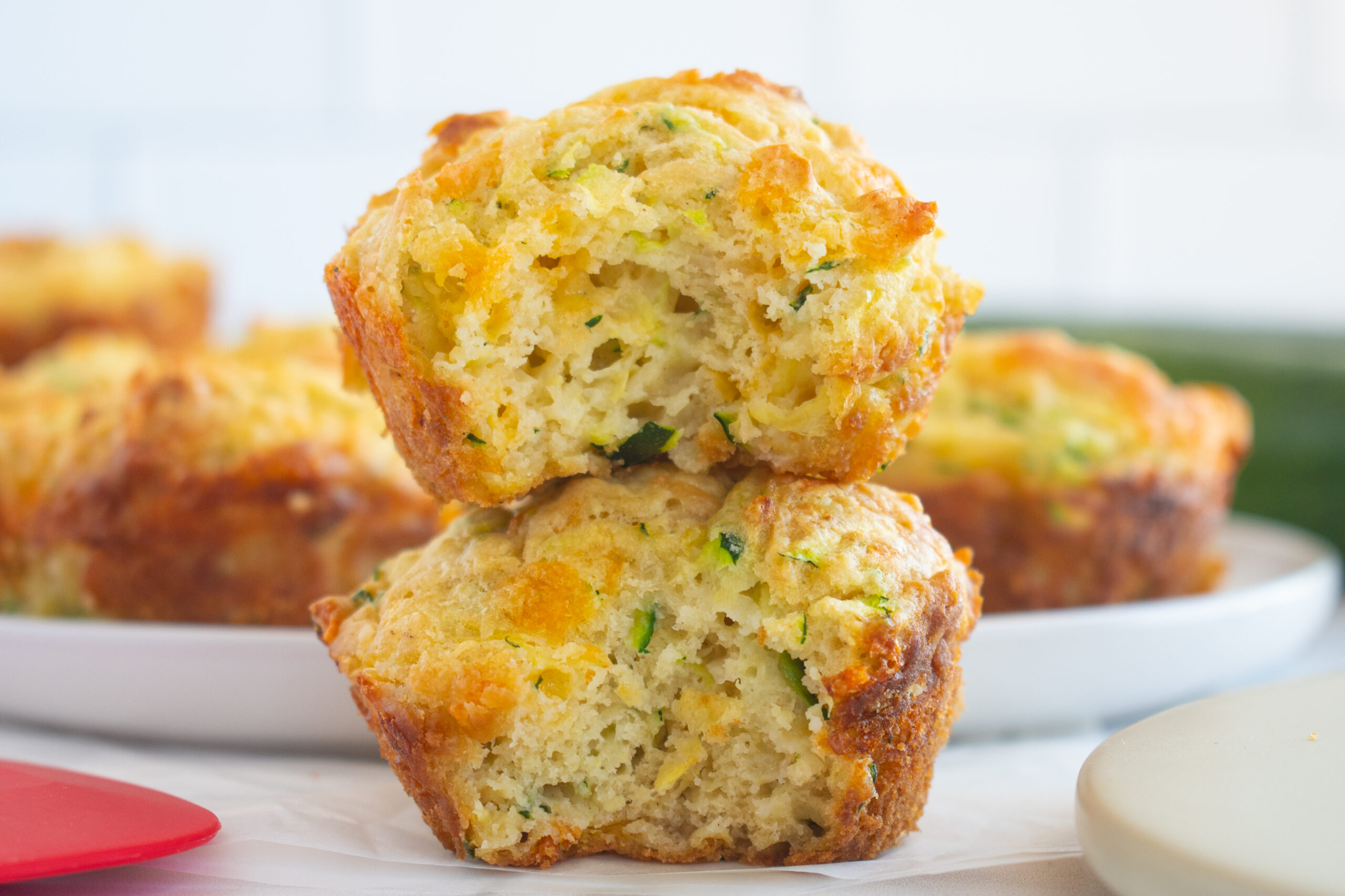These cheddar parmesan zucchini muffins are savory and fluffy, like the cheddar biscuits from Red Lobster! If you hav extra zucchini, this is the perfect recipe.