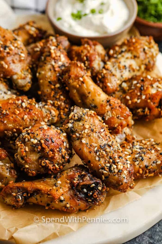 Wings are hands down our favorite appetizer, and these Everything Wings top the list! They’re extra crispy and have tons of flavor from the toasted everything seasoning. They’re naturally low carb, and my family devours them!