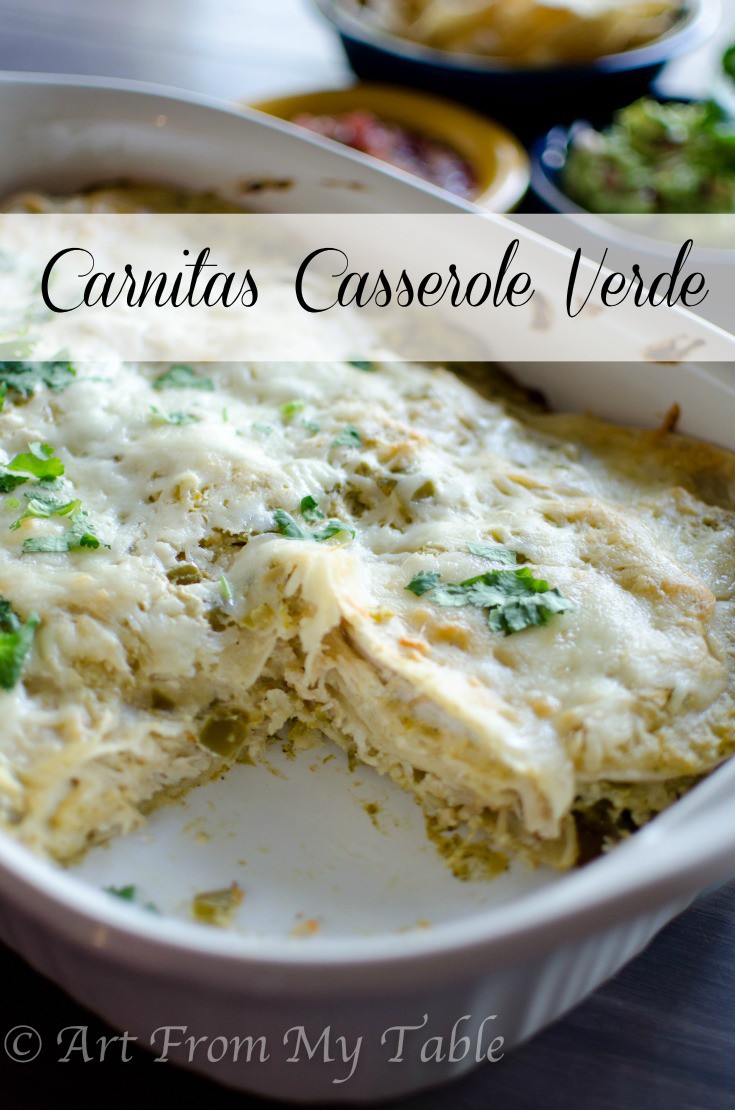 Pork Carnitas are my favorite! The salsa verde carnitas casserole is cheesy, savory, hearty, and a very satisfying dinner option to make with your leftover pulled pork. This casserole is easy to throw together and is an impressive way to switch up your dinnertime rotation!