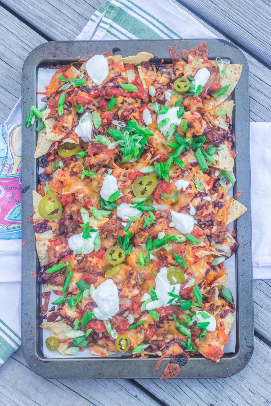 Talk about an easy dinner! Just spread tortilla chips on a sheet pan, add your leftover pulled pork and all the rest of your favorite nacho toppings! This meal is the perfect quick meal you can throw together in minutes! Your kids will get excited when they realize they have nachos for dinner!