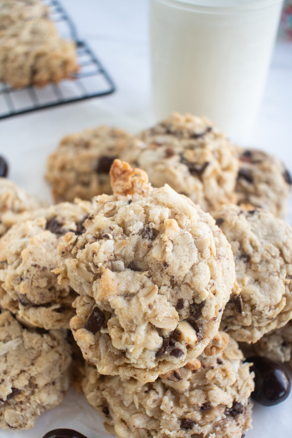 You’re in the right place if you are looking for a new yet simple cookie recipe! This chewy almond joy oatmeal cookie is made from mostly pantry ingredients. This recipe calls for chopped-up chocolate-covered almonds, but you can also use semi-sweet chocolate chips and almond pieces in this recipe.