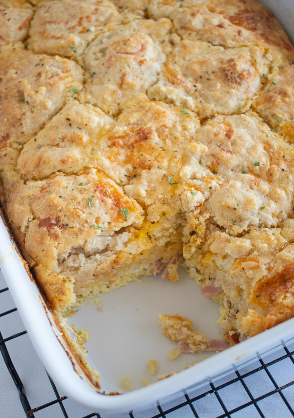 This Cheddar Bay Biscuit Breakfast Casserole is filled with fantastic flavor and is the perfect new recipe to serve at brunch this holiday season! This casserole is also delicious for breakfast, lunch, and dinner. This casserole is filled with protein and only needs easy ingredients.