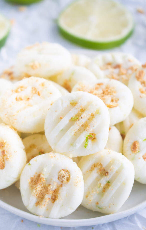 These no-bake key-lime pie cream cheese mints are perfect for any spring and summer holiday, Easter, weddings, showers, and Christmas.