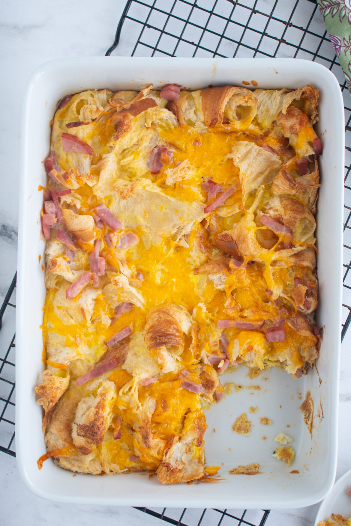 This casserole is perfect for brunch, graduation party, bridal shower, baby shower, easter, or Christmas breakfast. I also like making breakfast casserole for a quick weeknight dinner! The combination of buttery and flaky croissant with savory fillings makes it a popular choice for breakfast or brunch.