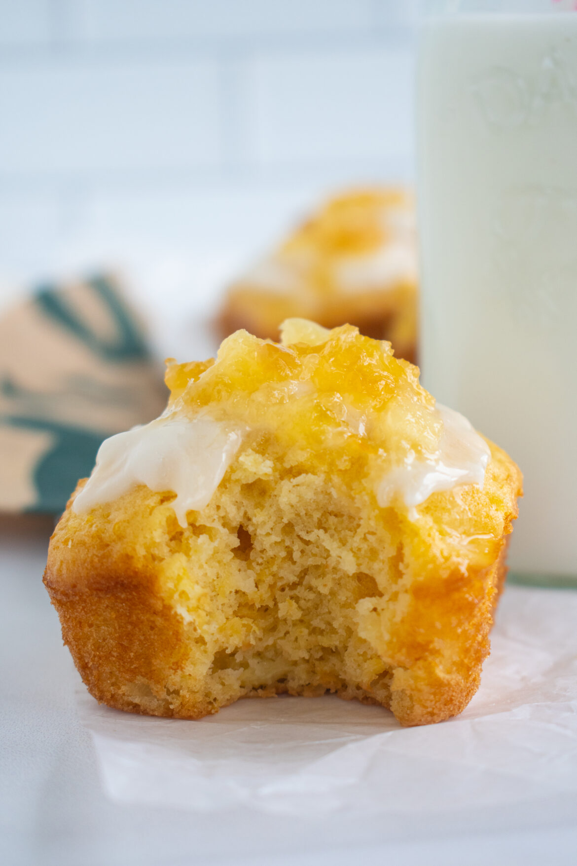 - Once the muffins are cooled, frost them and add the pineapple topping.