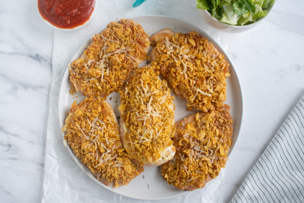 Coating chicken with cornflakes is a delicious gluten-free option. They taste amazing and turn out super crunchy when baked. The sweet flavor complements the savory nature of the chicken, creating a delicious combination.