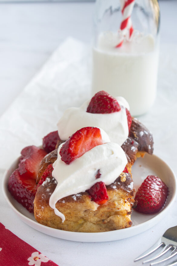 Serve: Cut the rolls into individual servings. Scoop a cup of strawberries on top of the rolls, followed by whipped cream.
