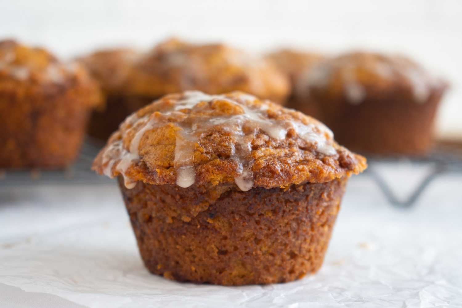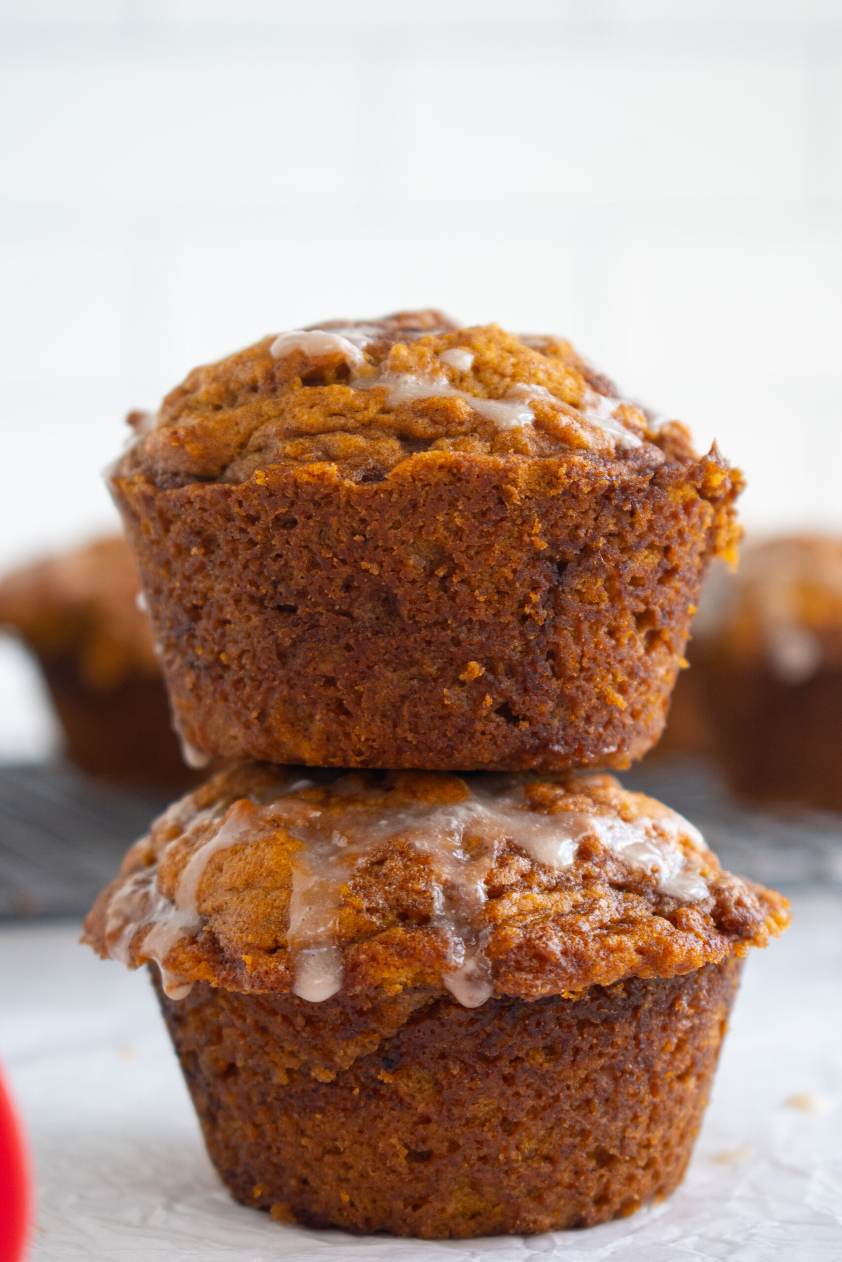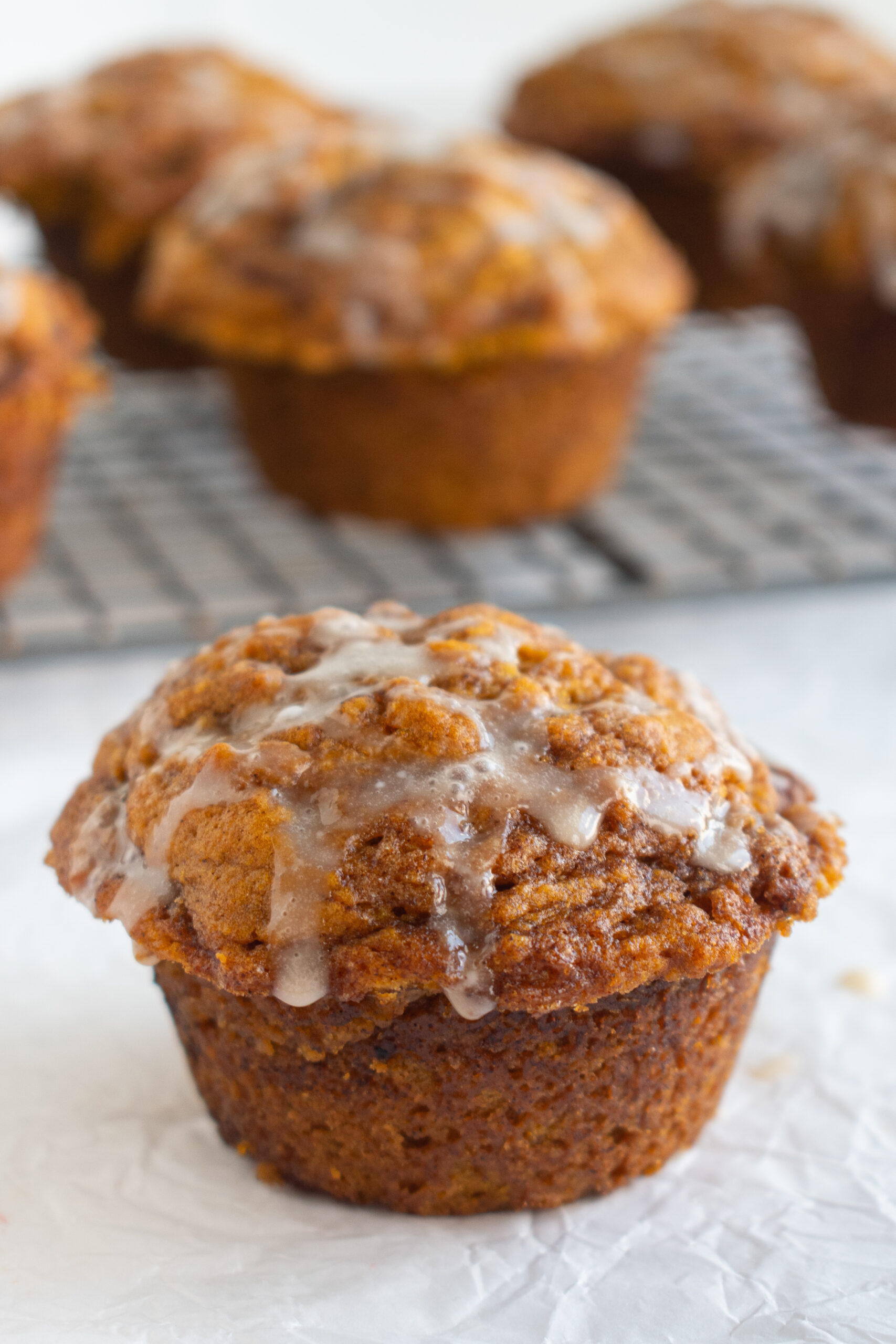 - Drizzle the cream cheese glaze over the cooled muffins.