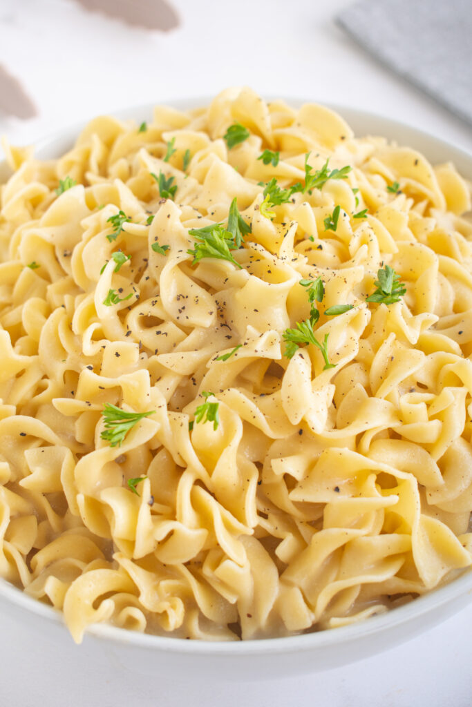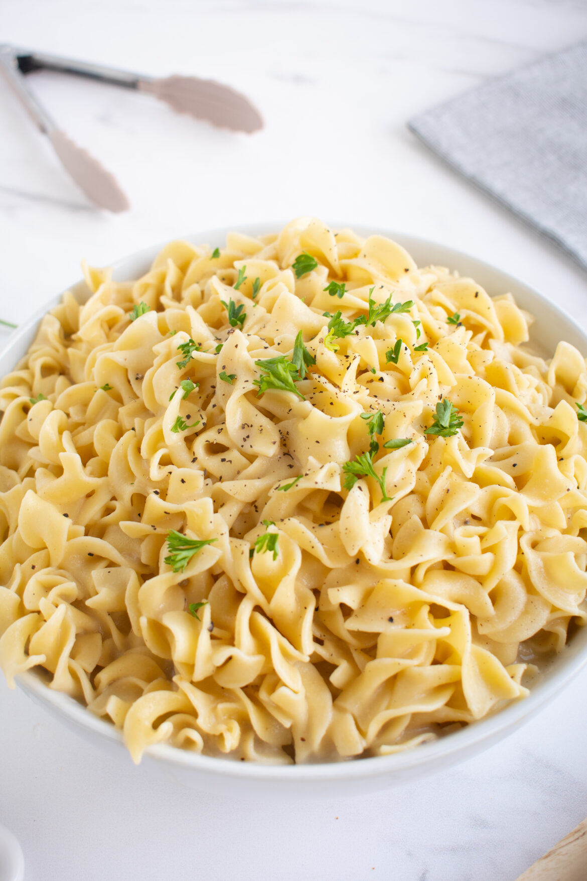 You will love the flavor of these easy cafeteria noodles, which can be served as a side or main dish. You do not need a can of cream chicken soup to make the most delicious comfort meal after a long day at work or school. This Instant Pot recipe will pressure cook for only 1 minute so that it will come together super fast!