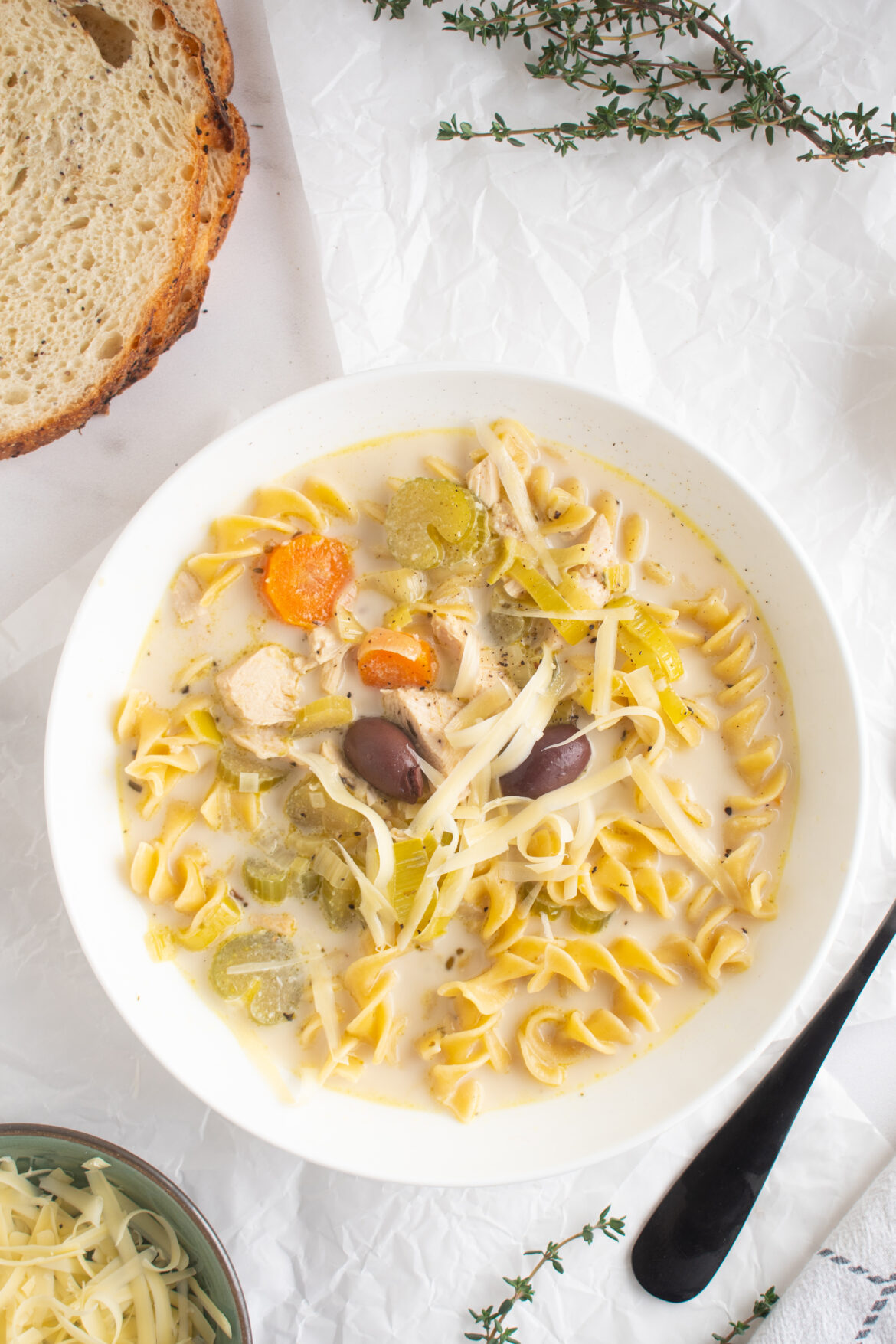 - Add noodles to each soup bowl as you serve. Al dente noodles taste better in this soup. Each person can choose how many noodles they want in their soup. Serve and eat!Storage: Leftovers can be stored in an airtight container in the fridge for up to 5 days. I suggest storing the pasta separately. You can also store the soup in the freezer. This French-inspired soup is the ultimate comfort food. It will make you feel like you’re having lunch at a Paris bistro. This meal is gluten-free and very healthy! You can have it with a slice of bread on the side!