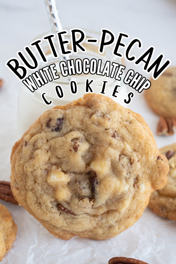 Chewy butter pecan white chocolate chip cookies are a mouthwatering treat! Each bite is a mix of nutty, sweet, and slightly salty flavors, a perfect comfort cookie that’s warm and indulgent.