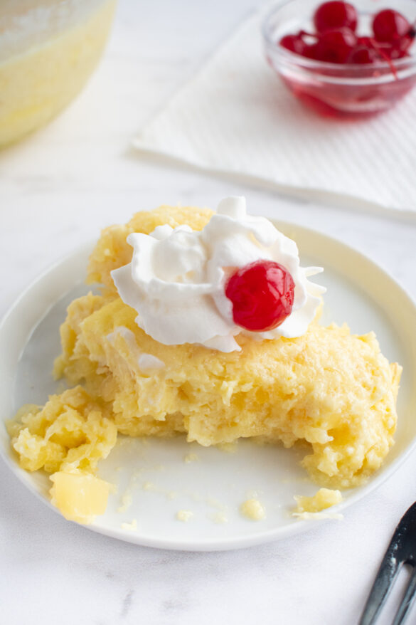 This Creamy Pineapple Jello Salad will remind you of the Dole Whip you can get at Disney! It’s packed with crushed pineapple and the perfect dessert “salad” for your next potluck!