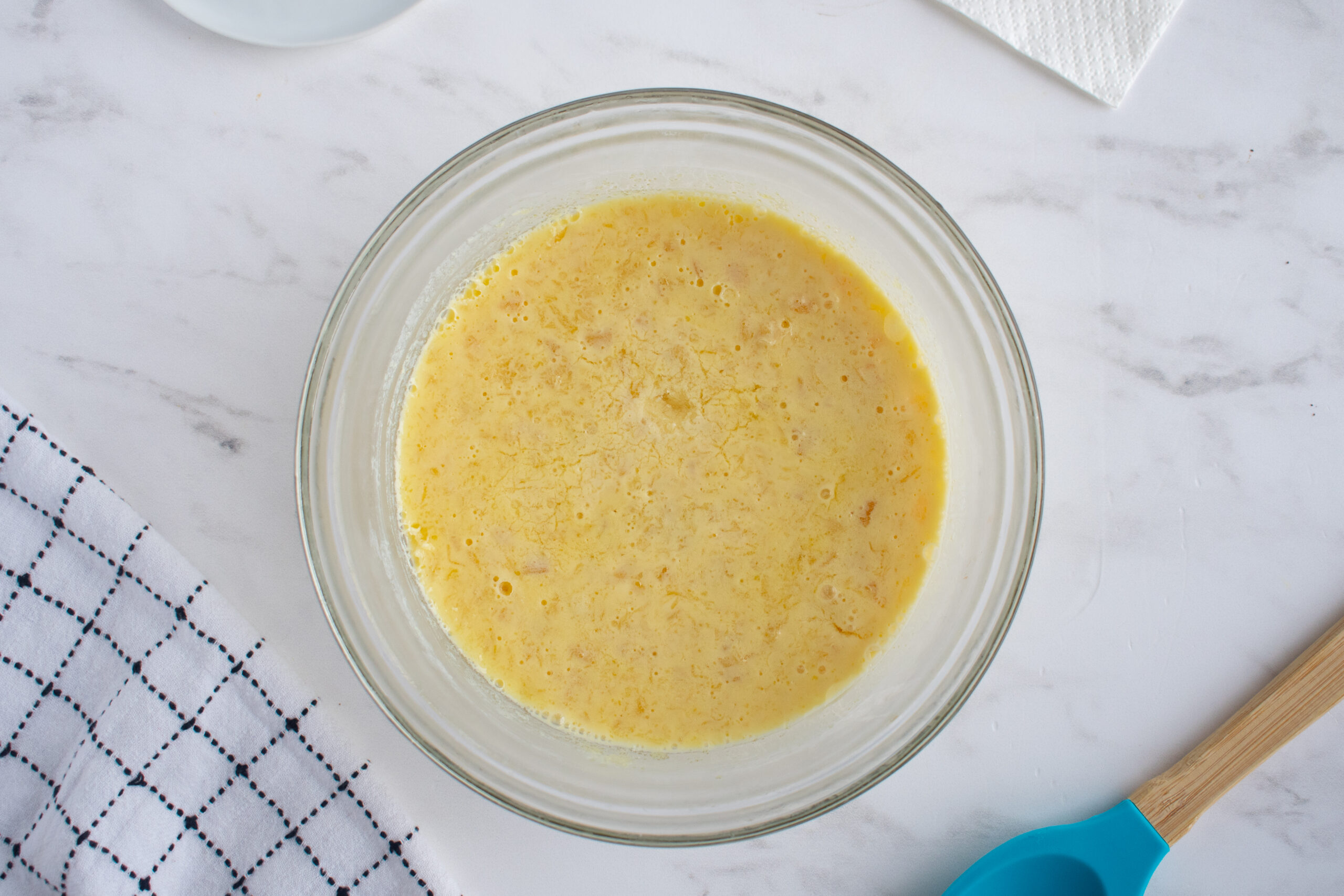 - Combine the pineapple-flavored Jello powder in a mixing bowl with 1 cup of boiling water. Stir until the Jello powder is completely dissolved.