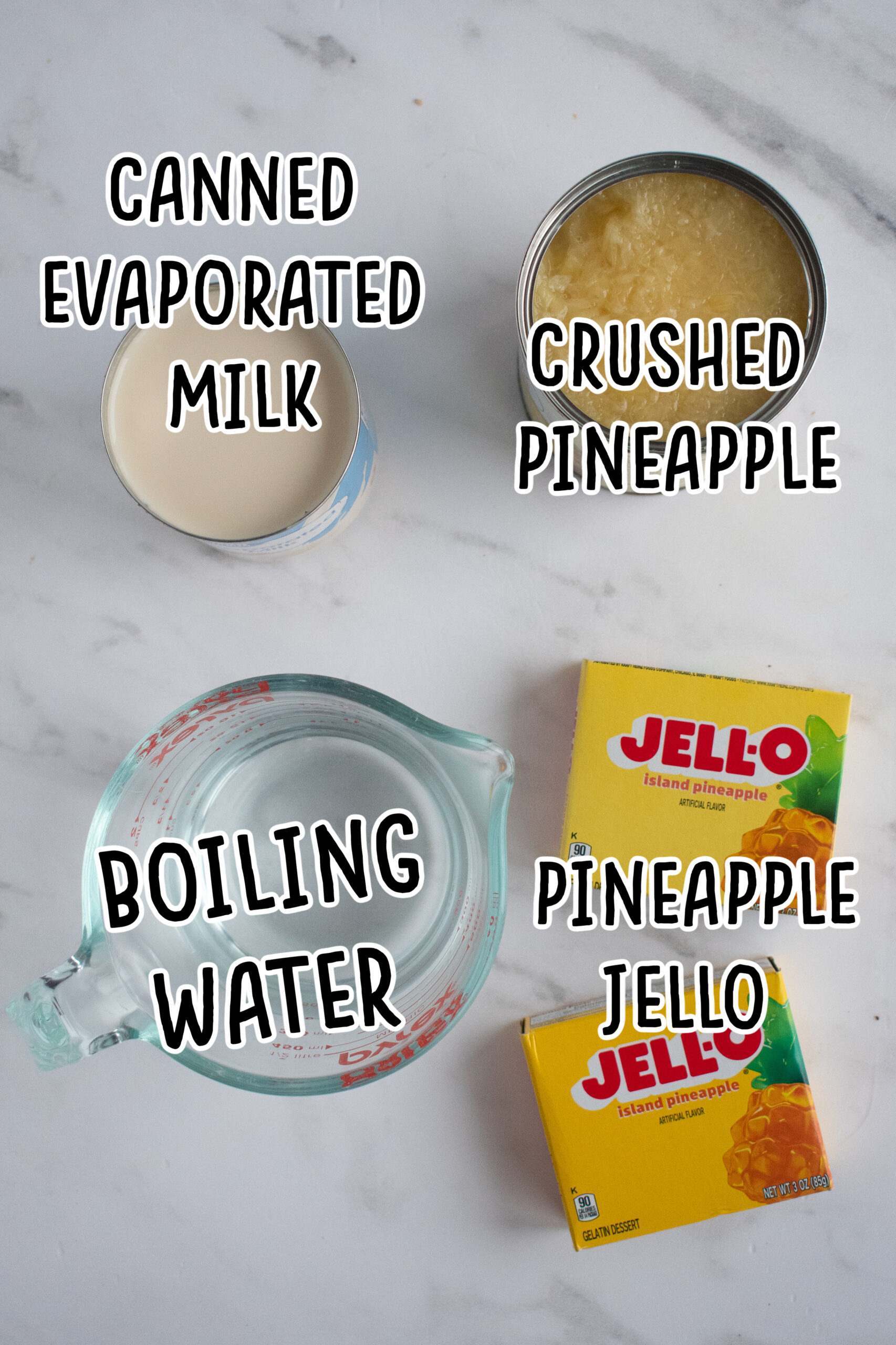 One large (6 oz) box of pineapple-flavored Jello is required, or two 3 oz containers can be used.