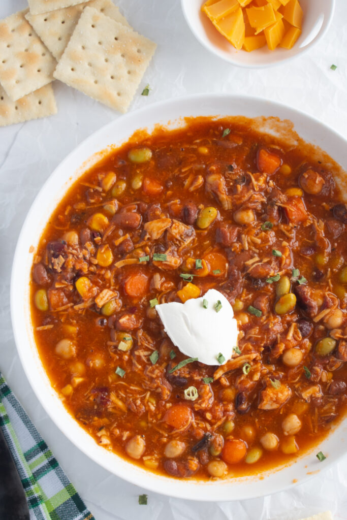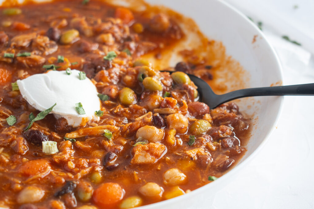 This copycat Panera turkey chili recipe is packed with tons of protein and requires only a few minutes of prep time. It is reminiscent of Panera Bread’s turkey chili but is much less expensive! This chili is gluten-free, filled with fiber, and ideal for using leftover lean turkey.
