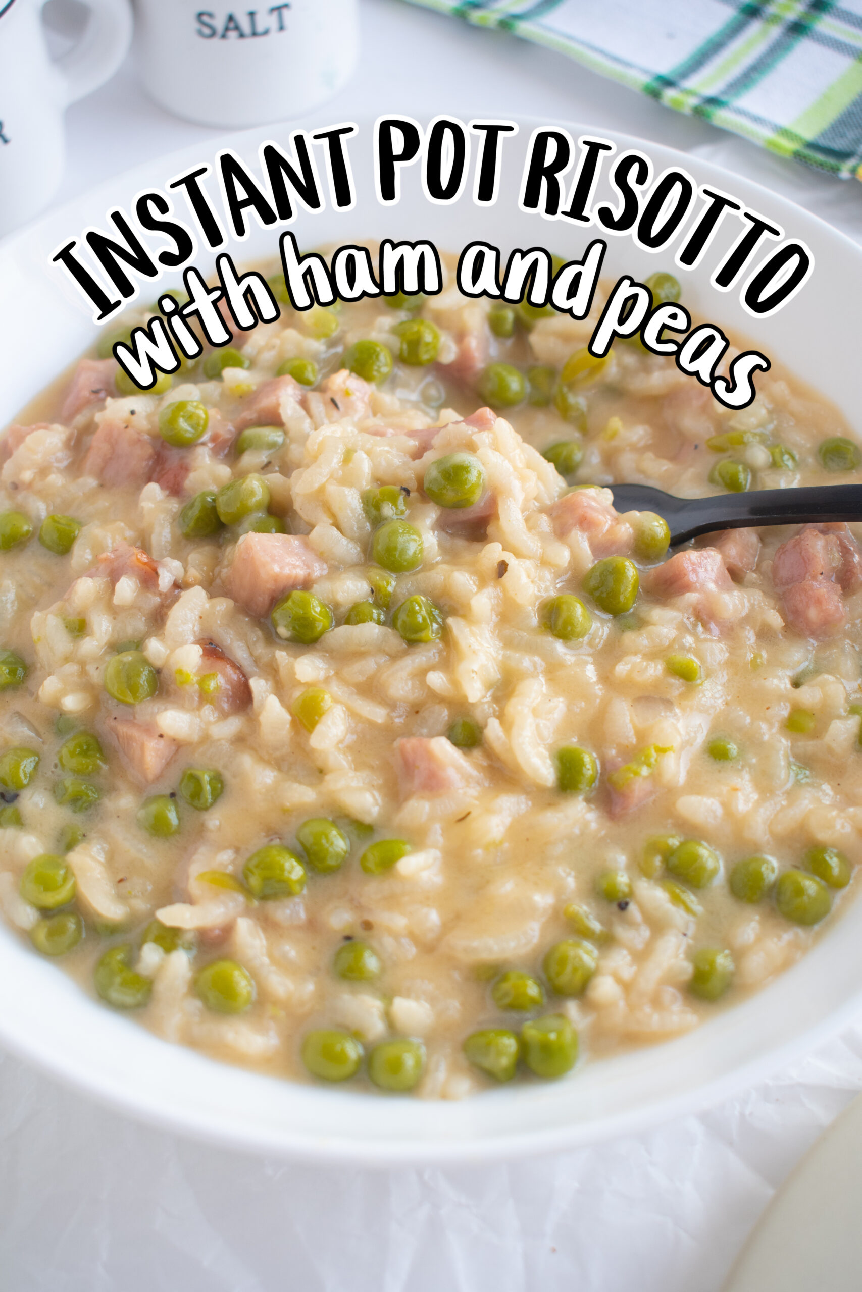I have instant pot instructions and stovetop instructions for using a saucepan for this dish. This creamy Ham and Peas risotto is super tender and amazingly satisfying! You can make this on your stove or select the less labor-intensive method of making this creamy risotto in your instant pot. This meal is incredible and will please everyone in your family.