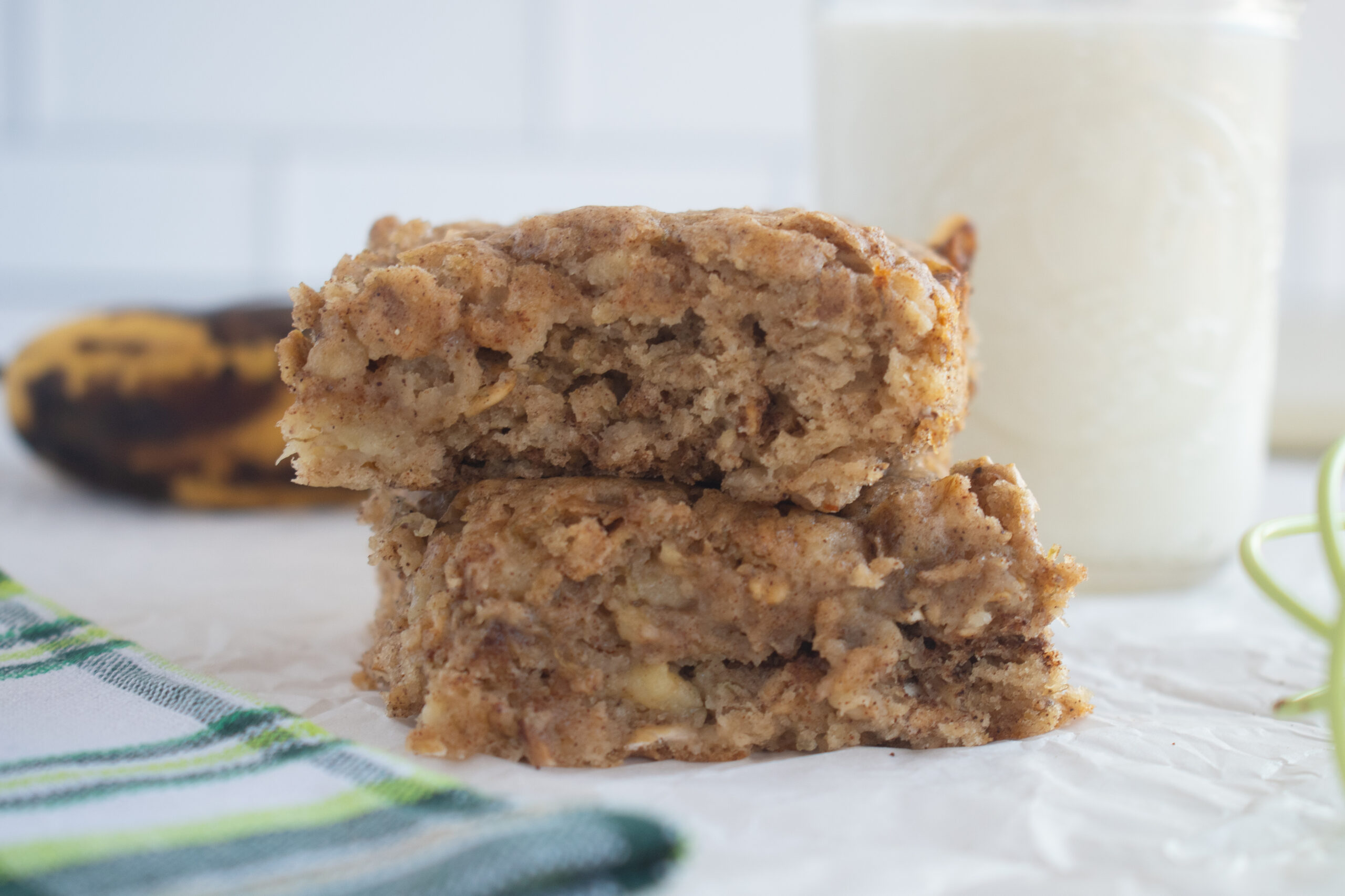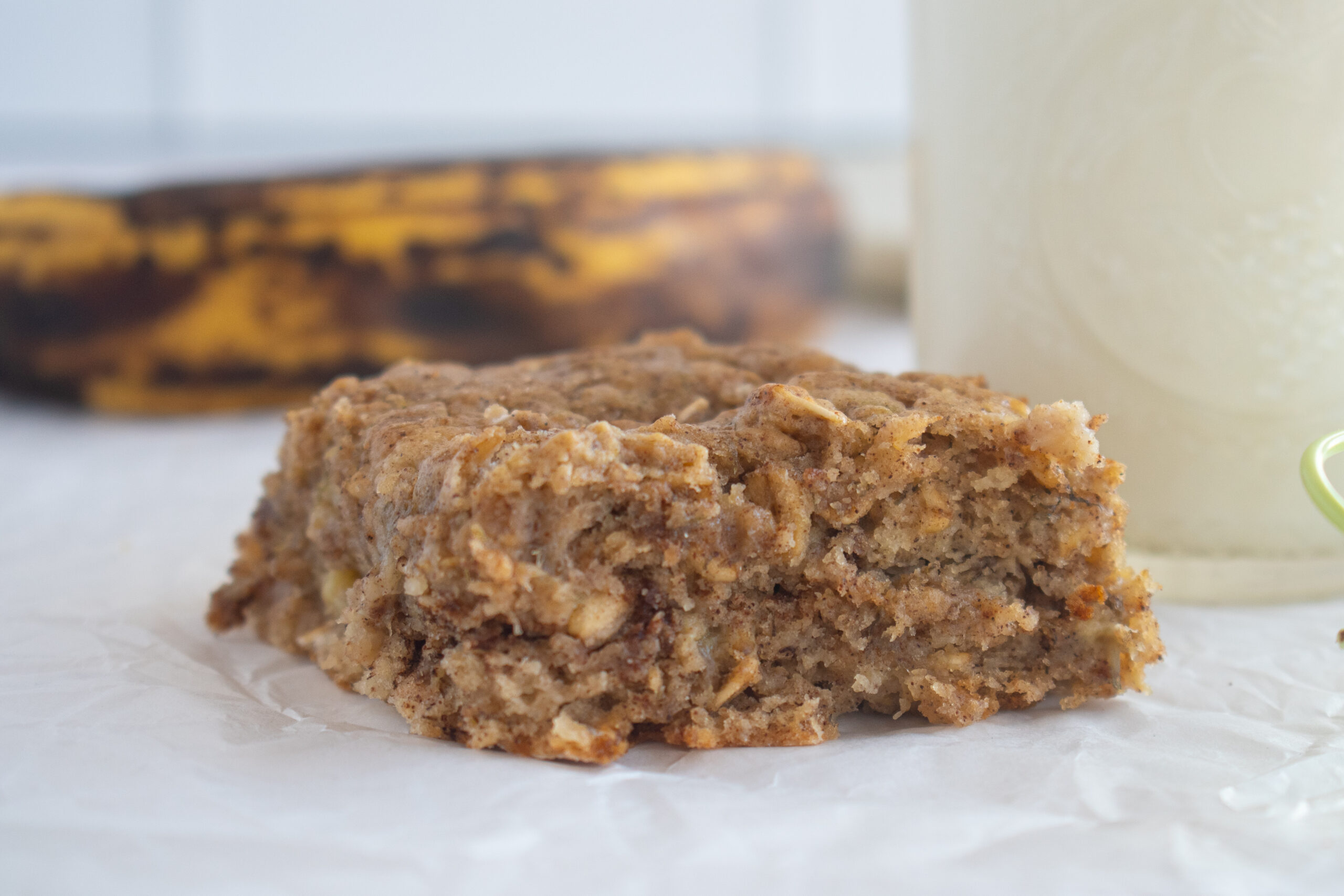 Your family will love these banana oat bars! These are nutty, fluffy, and sweet. Plus, these are made with better-for-you ingredients than many baked goods. Your family will immediately beg for these once you pull them out of the oven!