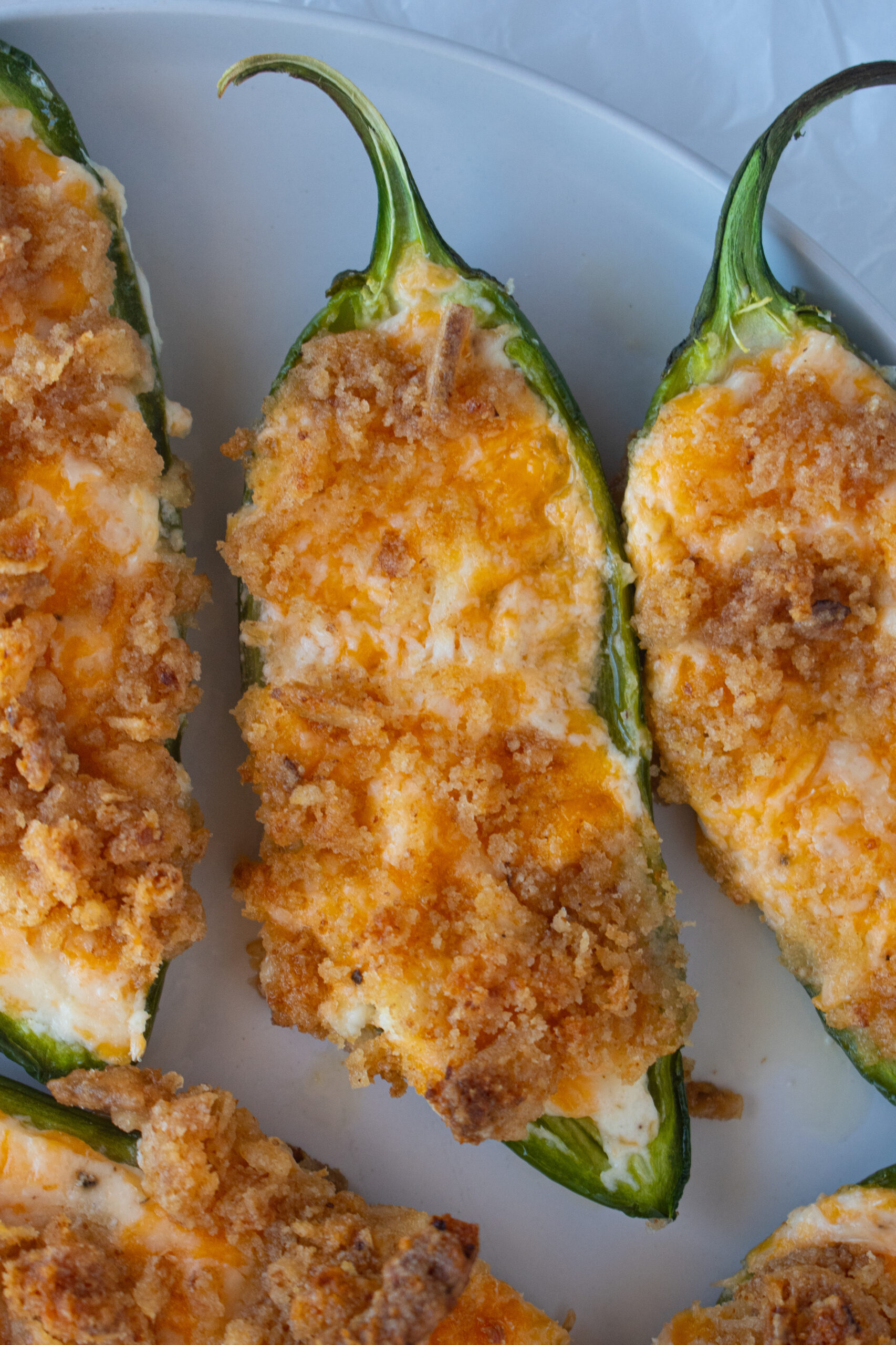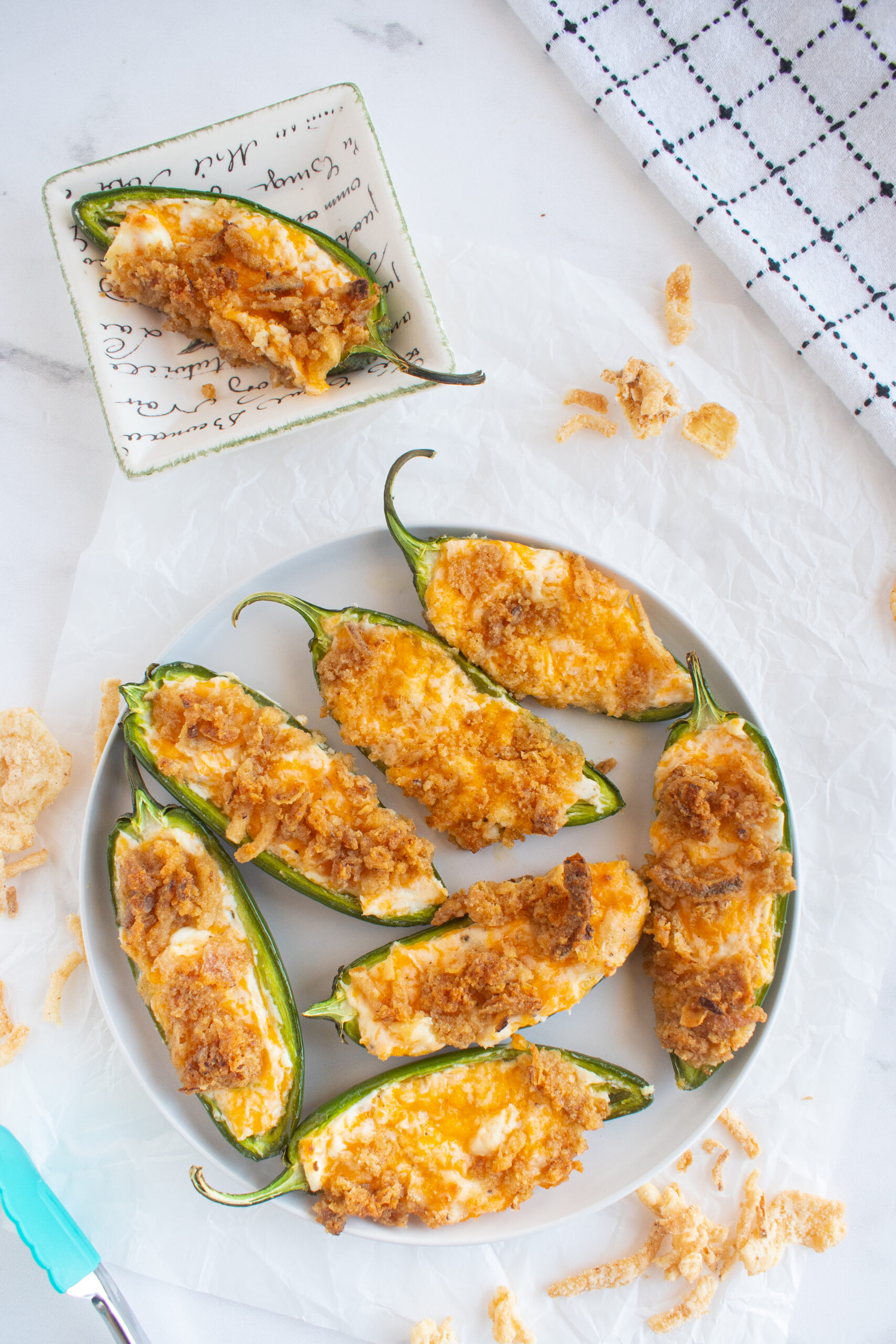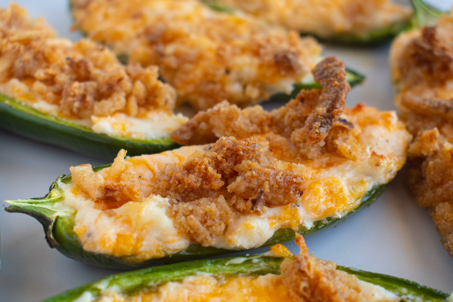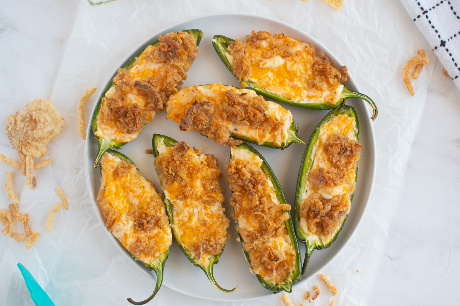 These French-fried onions are the perfect addition to these jalapeño poppers! The crunch and flavor of the onions might slightly mellow out the spiciness of the jalapeños, creating a more balanced taste experience. Your friends and family will love these as an appetizer or snack! The way the cream cheese melts right into the pepper is comforting and delicious!