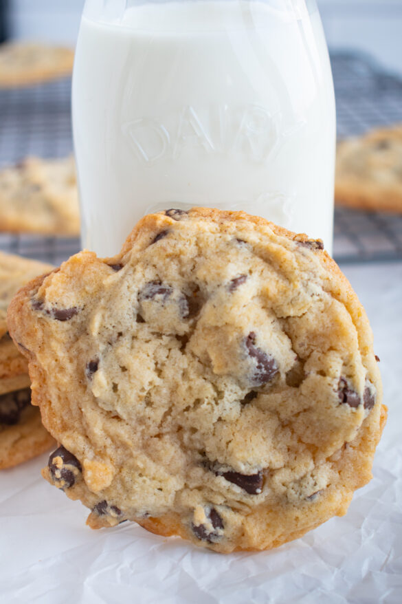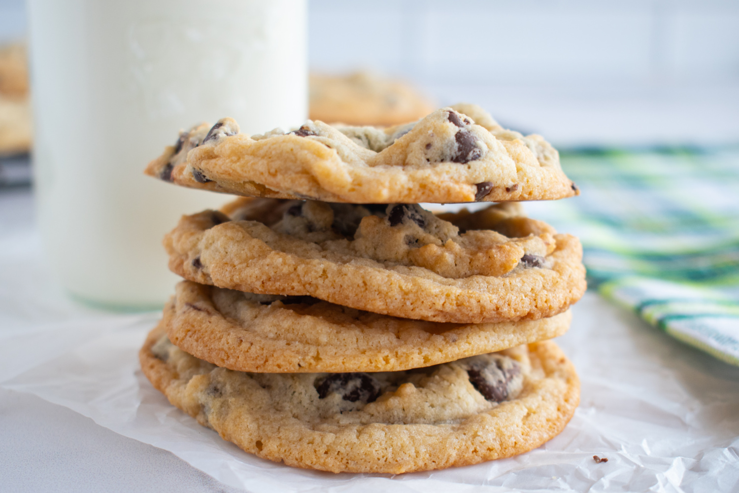 Adding applesauce to chocolate chip cookies is a game-changer! Your cookies will turn out thin, soft, and chewy, similar to the packaged cookies you get at grocery store bakeries!