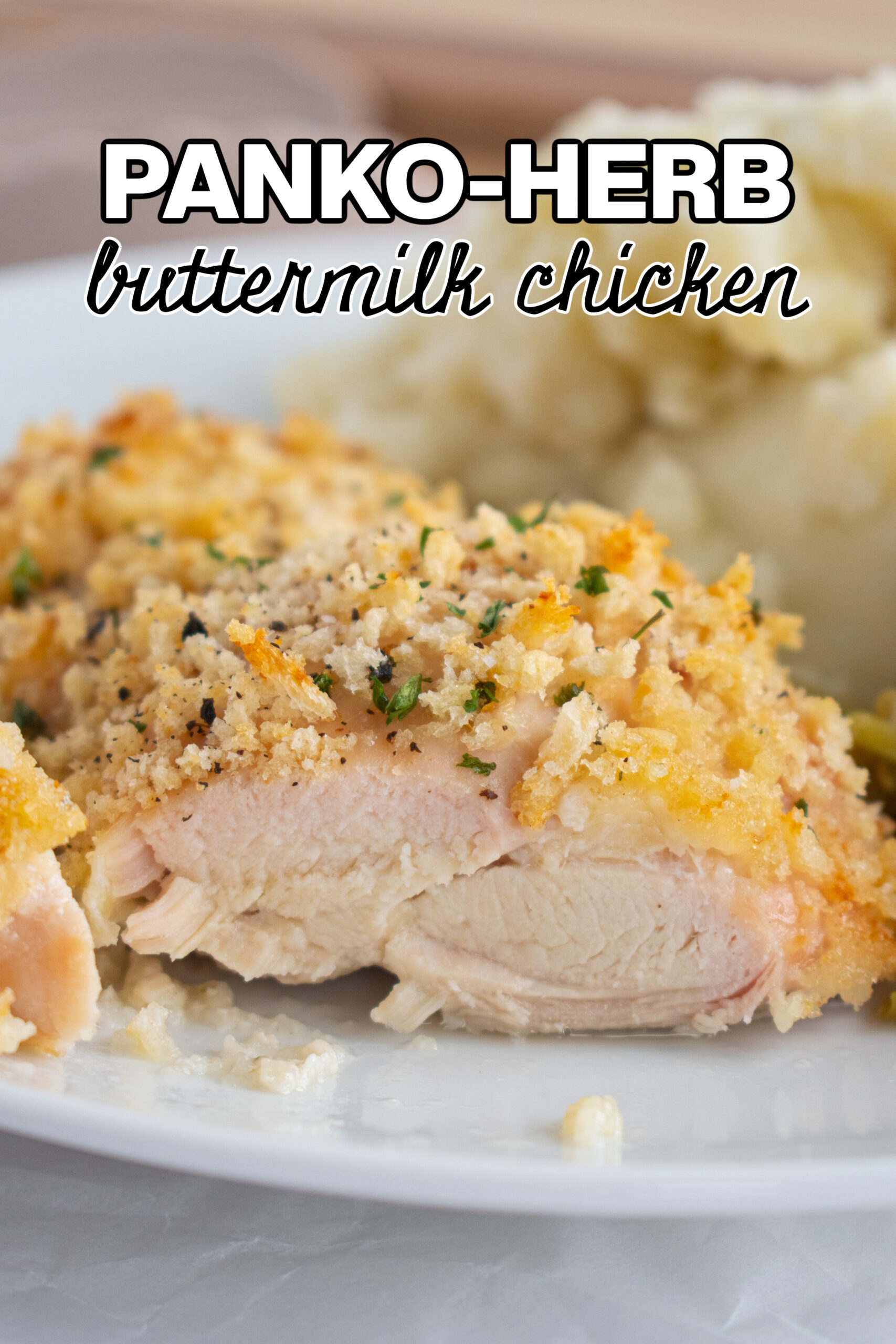 This Panko Herb Buttermilk Baked Chicken is everything you want in an easy dinner! Soaked in buttermilk for tenderness, coated in a herby, crunchy panko crust, and baked to golden perfection.