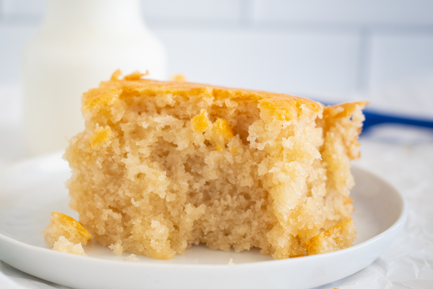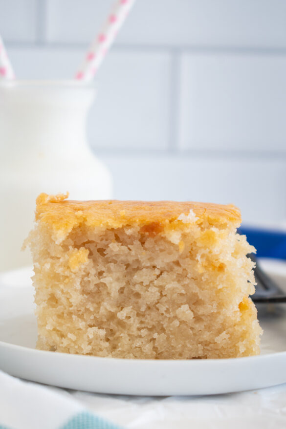 Self-rising flour works well in this recipe because it already contains a leavening agent and salt, making it a truly simple recipe. With this cake, there is no need to worry about baking powder or baking soda. Plus, the leavening agent is evenly distributed throughout the flour. One downside of self-rising flour is its shorter shelf life than all-purpose flour, so check the expiration date.