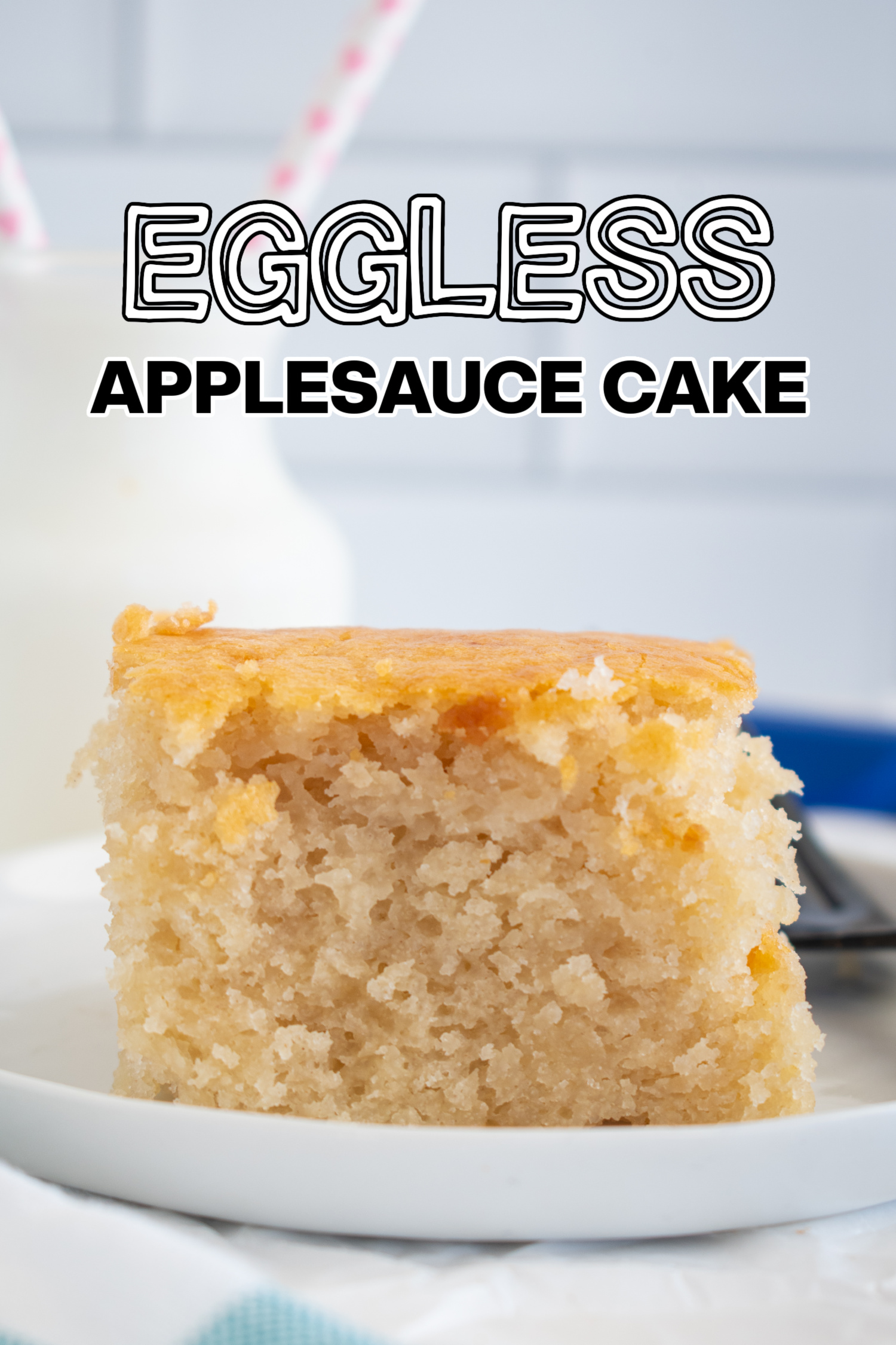 You will love the natural sweetness and moist texture of this easy eggless applesauce cake. It is perfect for a last-minute birthday cake, a coffee cake, or to bake for an after-school snack or dessert. You can use this as a blank slate to add additional flavors. This cake is moist with a tender crumb and made quickly and easily using pantry staples.