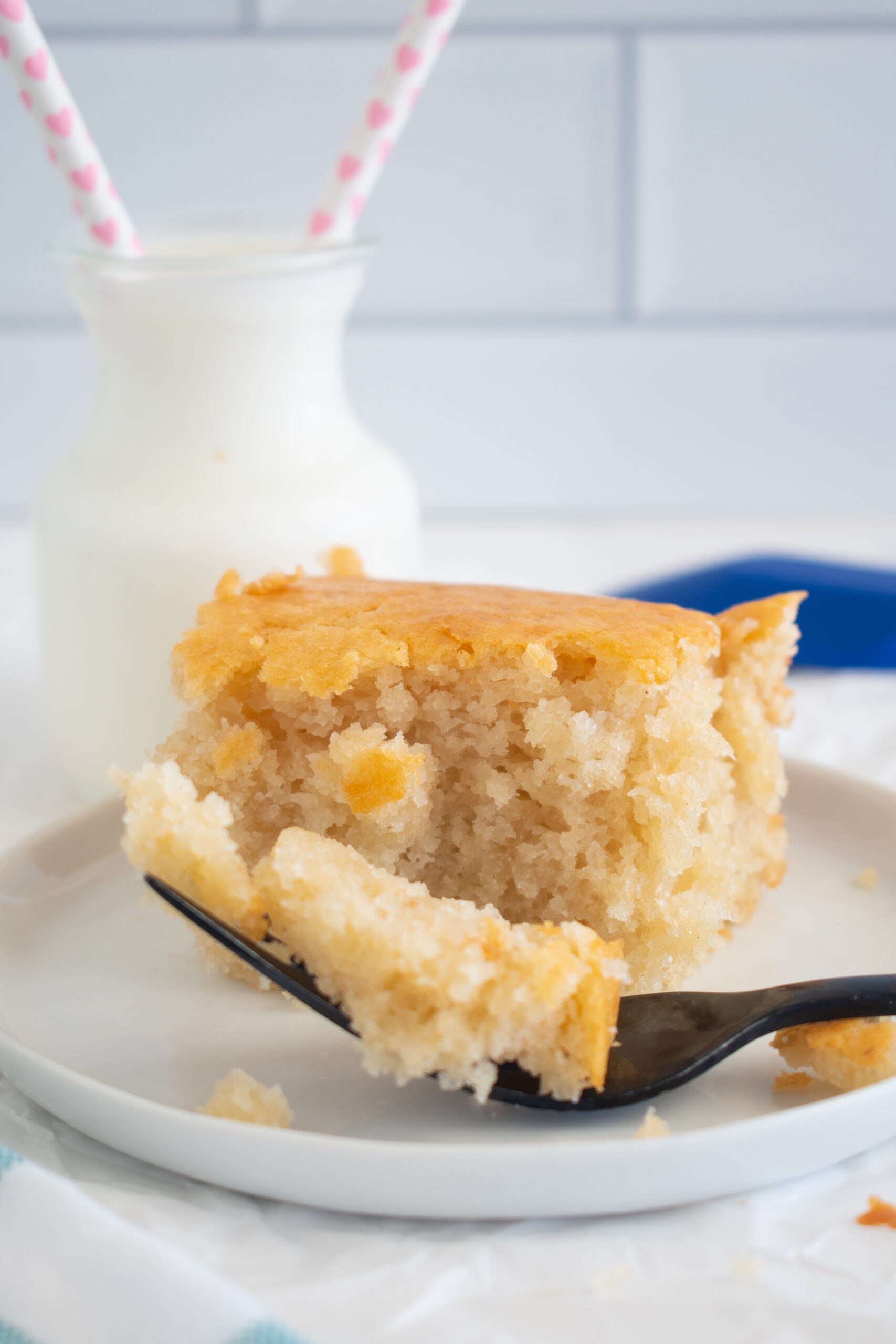 If you want to make this cake vegan, you can substitute the milk with a non-dairy milk or even water.