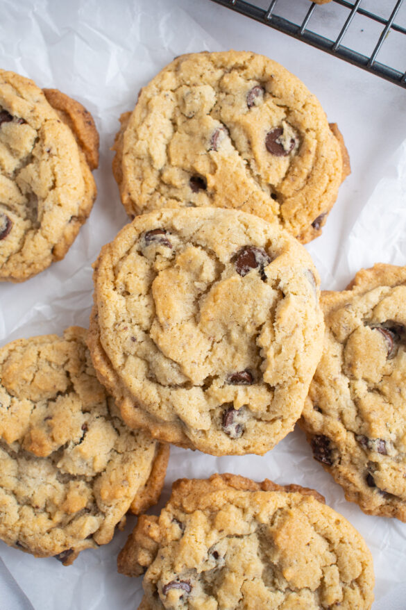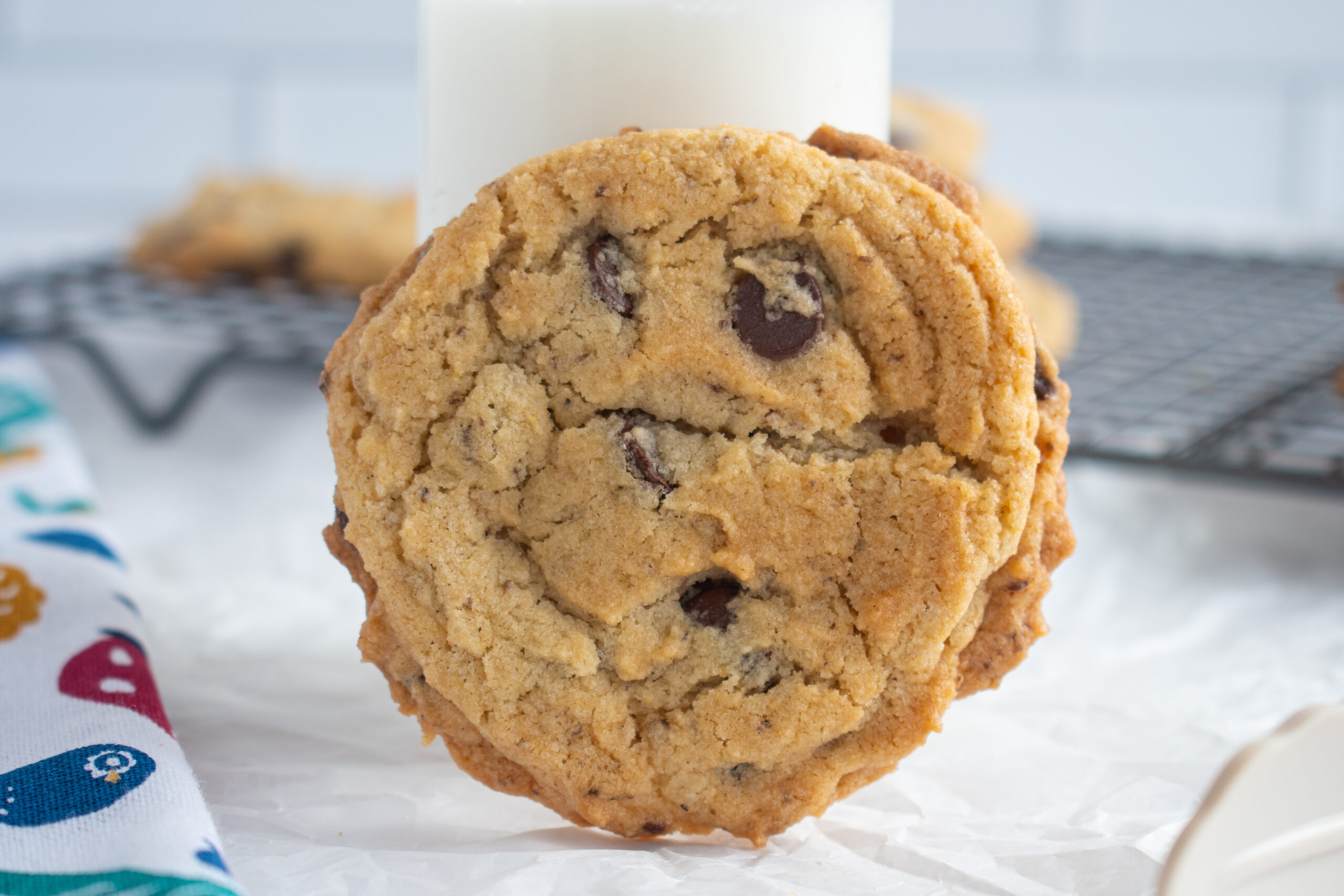 Chocolate chip cookies made with a flaxseed egg turn out soft, golden, and flavorful. You’ll love the slight crisp on the edges and the perfect chew in the center.