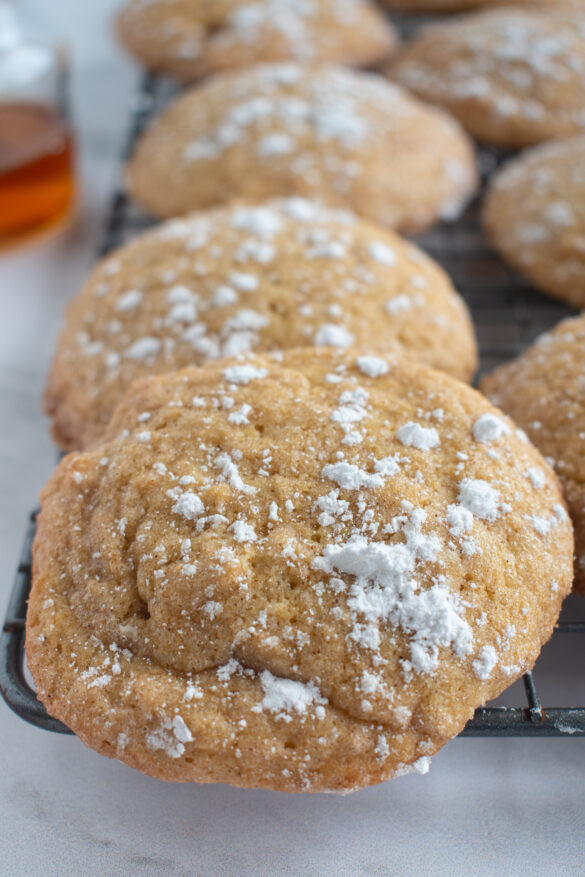 It’s the combo of cinnamon, nutmeg, vanilla, and that sweet maple glaze, a classic French toast flavor in every bite. These French toast cookies have a soft and chewy texture with crispy edges, making them perfect for brunch, fall gatherings, or as a gift. These taste like breakfast, but you’ll want to eat them all day long!