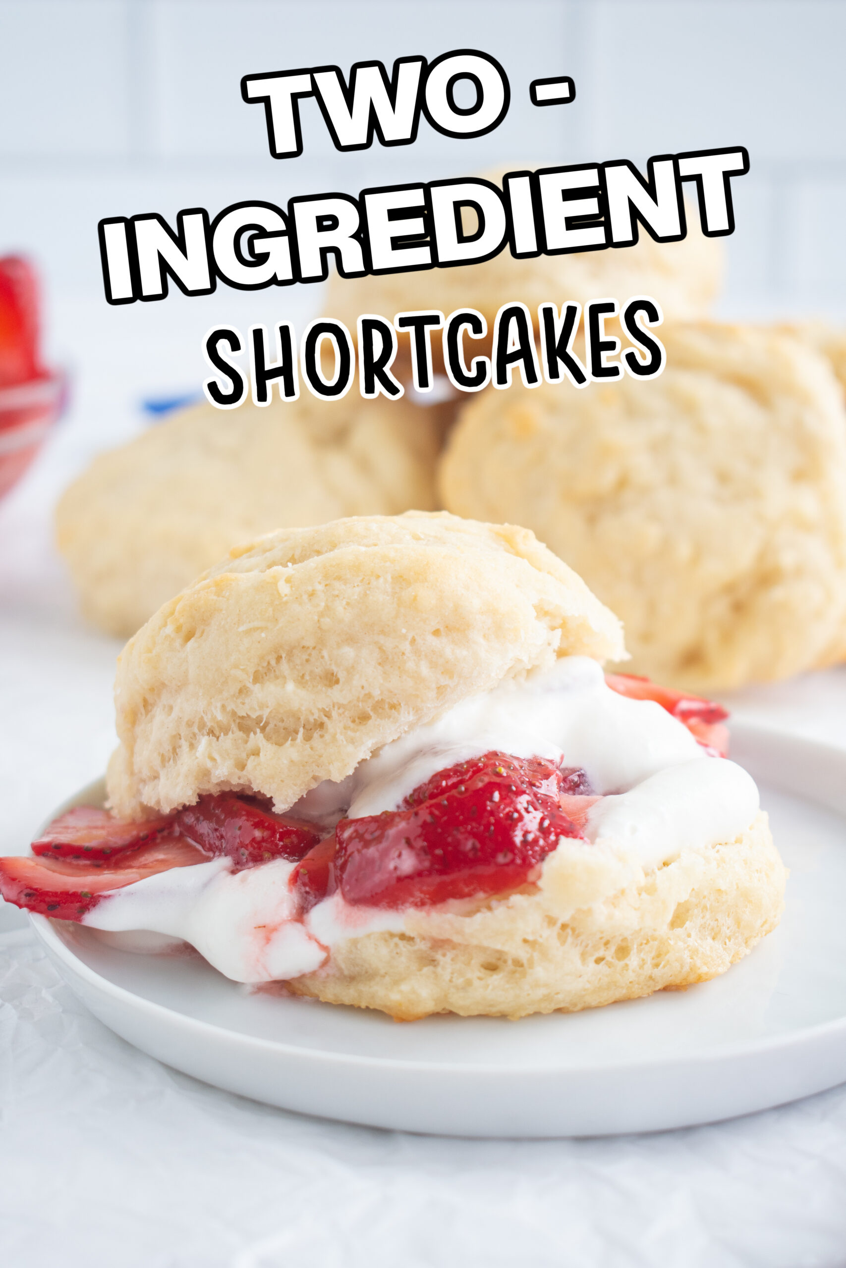 These easy two-ingredient biscuits for strawberry shortcake are a delightfully easy twist on this classic dessert. They combine effortlessly and pair wonderfully with fresh strawberries and homemade whipped or vanilla ice cream.