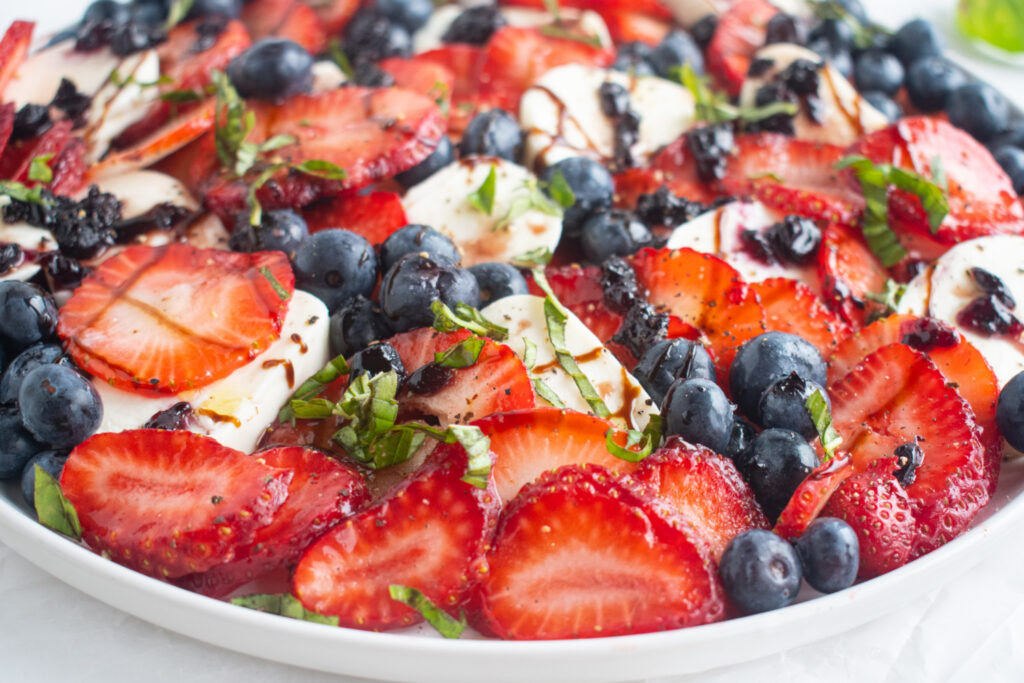 This berry caprese salad is a family-friendly recipe and will be the perfect addition to your Fourth of July or Memorial Day spread!