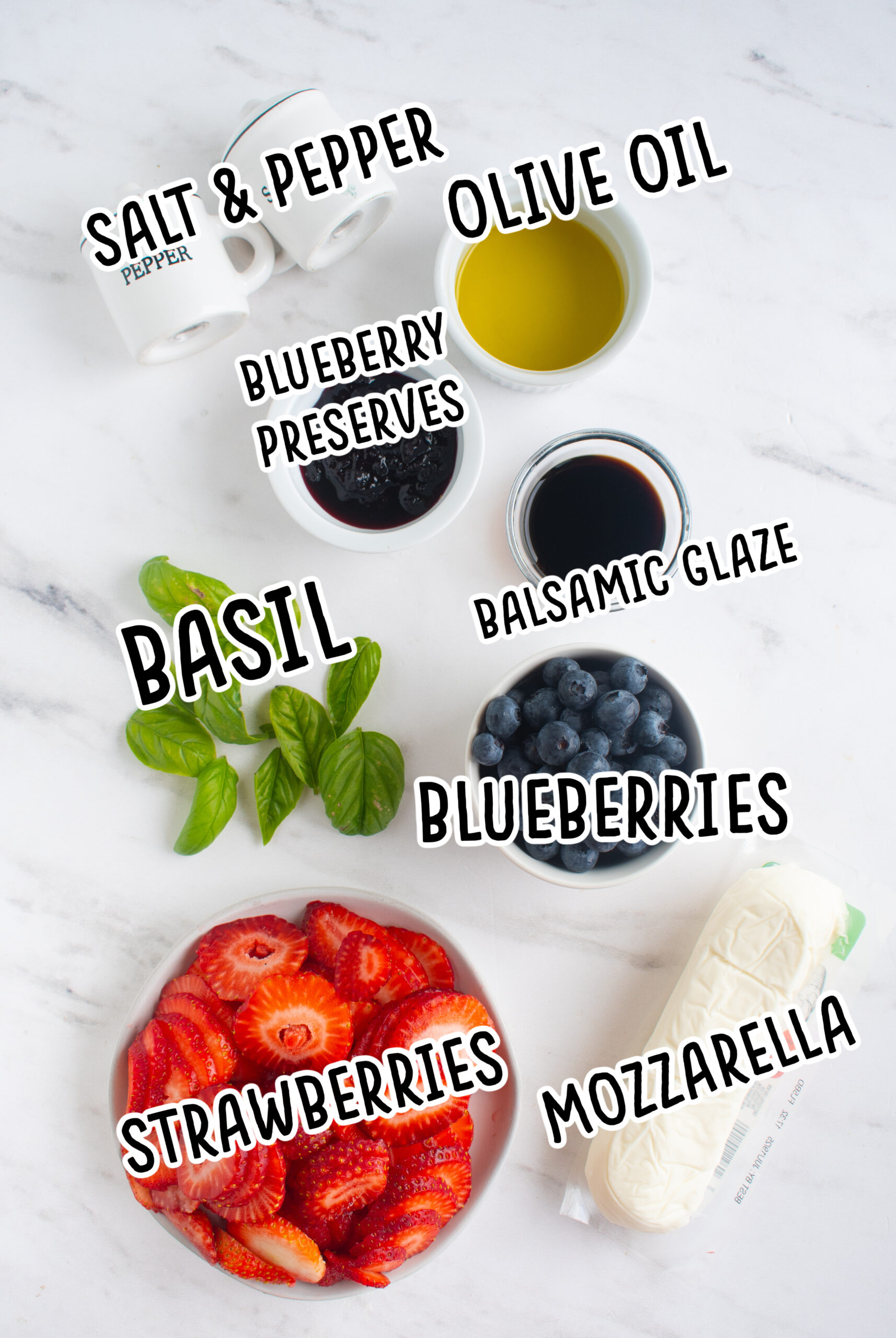 Thinly sliced strawberries- Thinly sliced strawberries work best because they will layer well with the mozzarella cheese and soak up all the additional flavors.